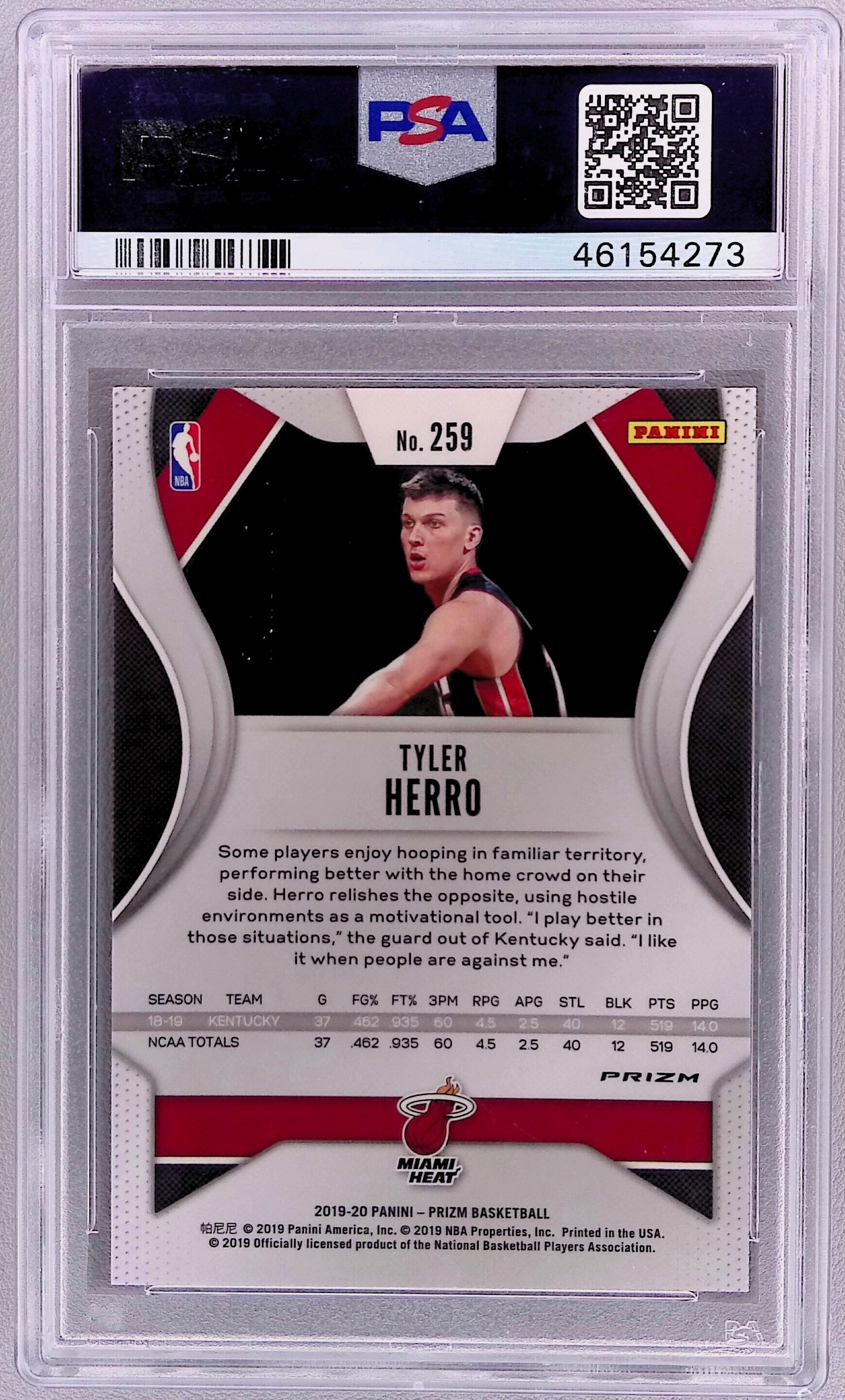 2019 Panini Prizm Tyler Herro Fast Break Blue /175 Rookie #259 PSA 10