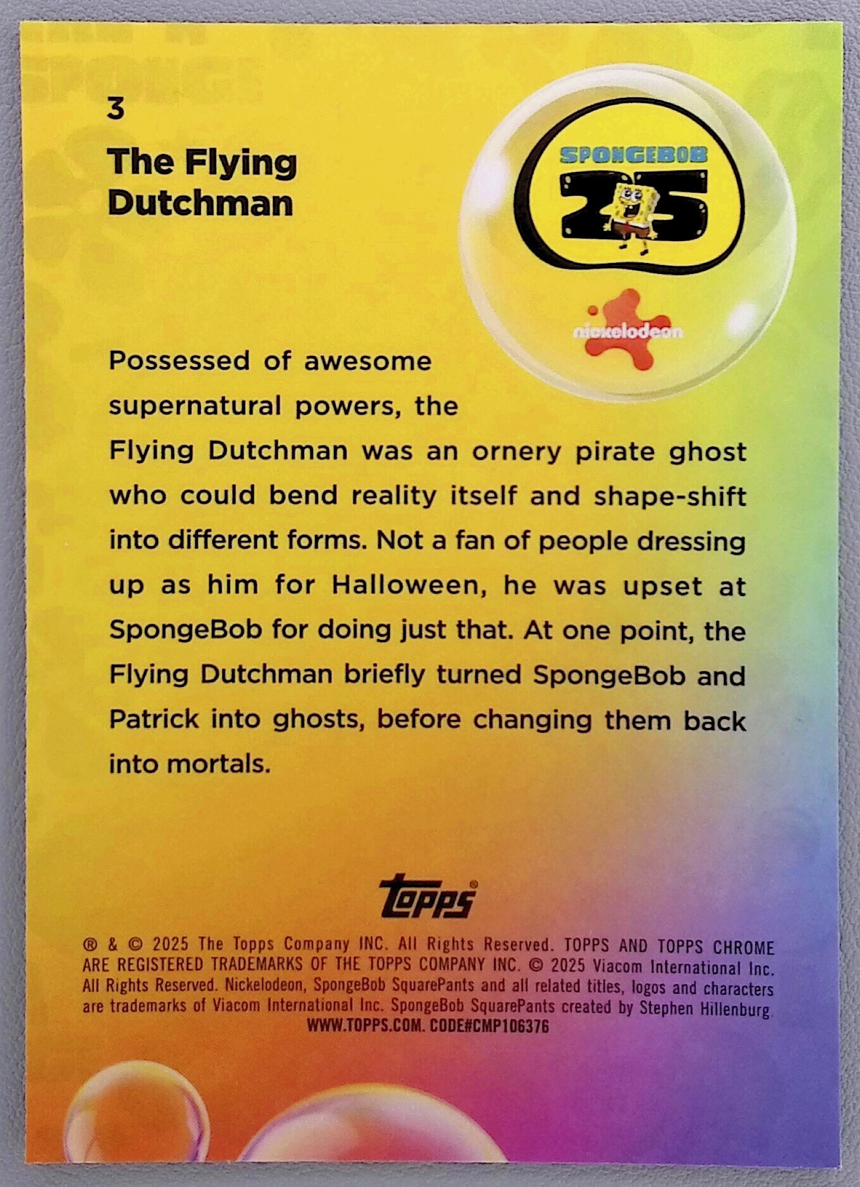2025 Topps Chrome SpongeBob 25th Anniversary Flying Dutchman Bubble /99 #3