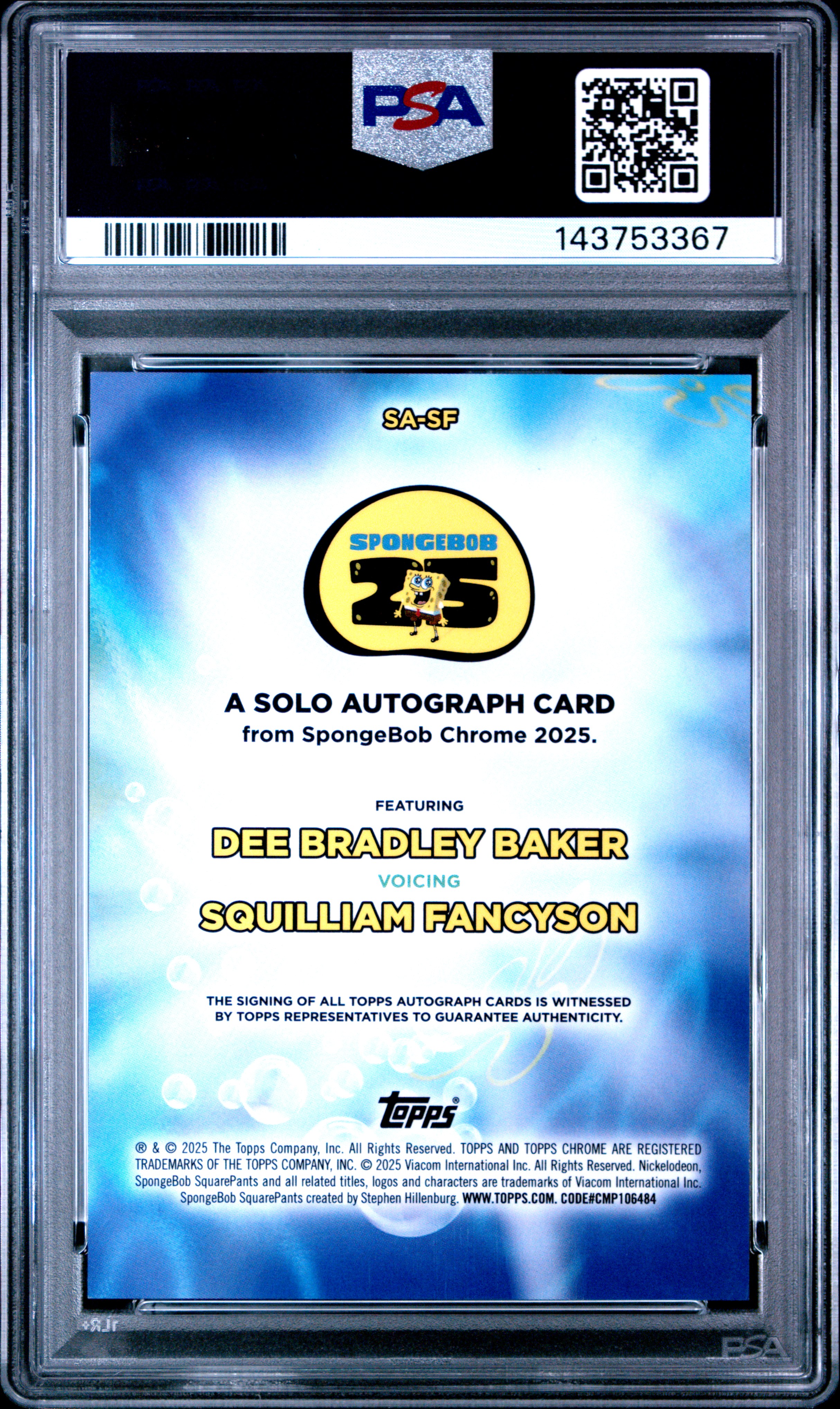 2025 Topps Chrome Sapphire SpongeBob Squilliam Fancyson Baker Auto #SA-SF PSA 8
