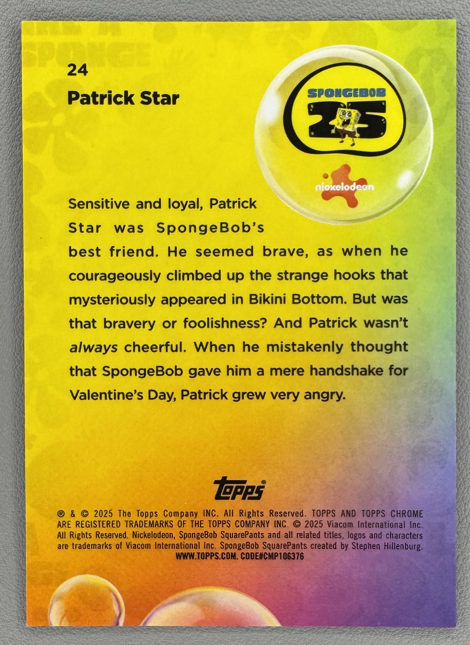 2025 Topps Chrome SpongeBob 25th Anniversary Patrick Star Gold /50 #24