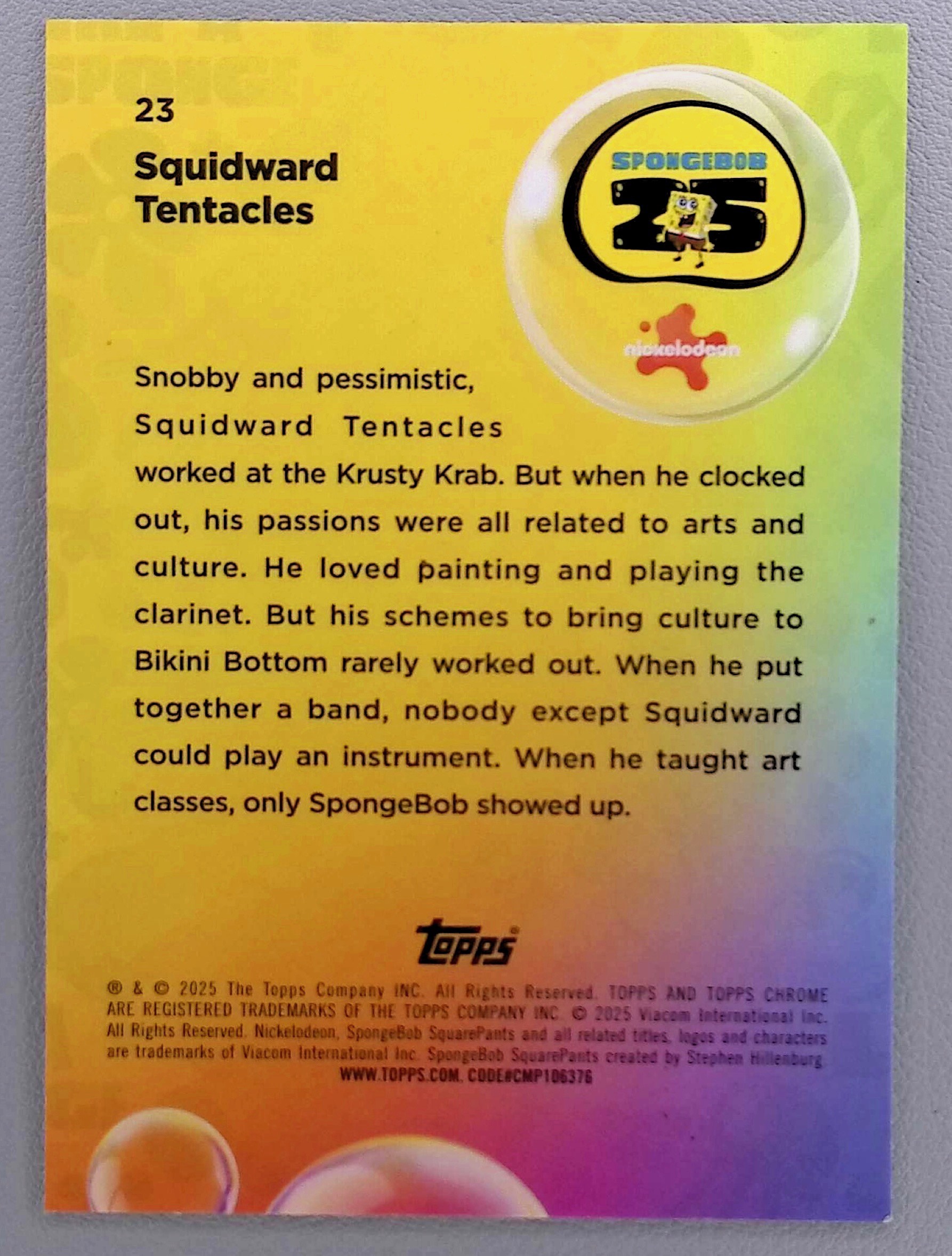 2025 Topps Chrome Spongebob 25th Anniversary Squidward Tentacles Blue /150 #23