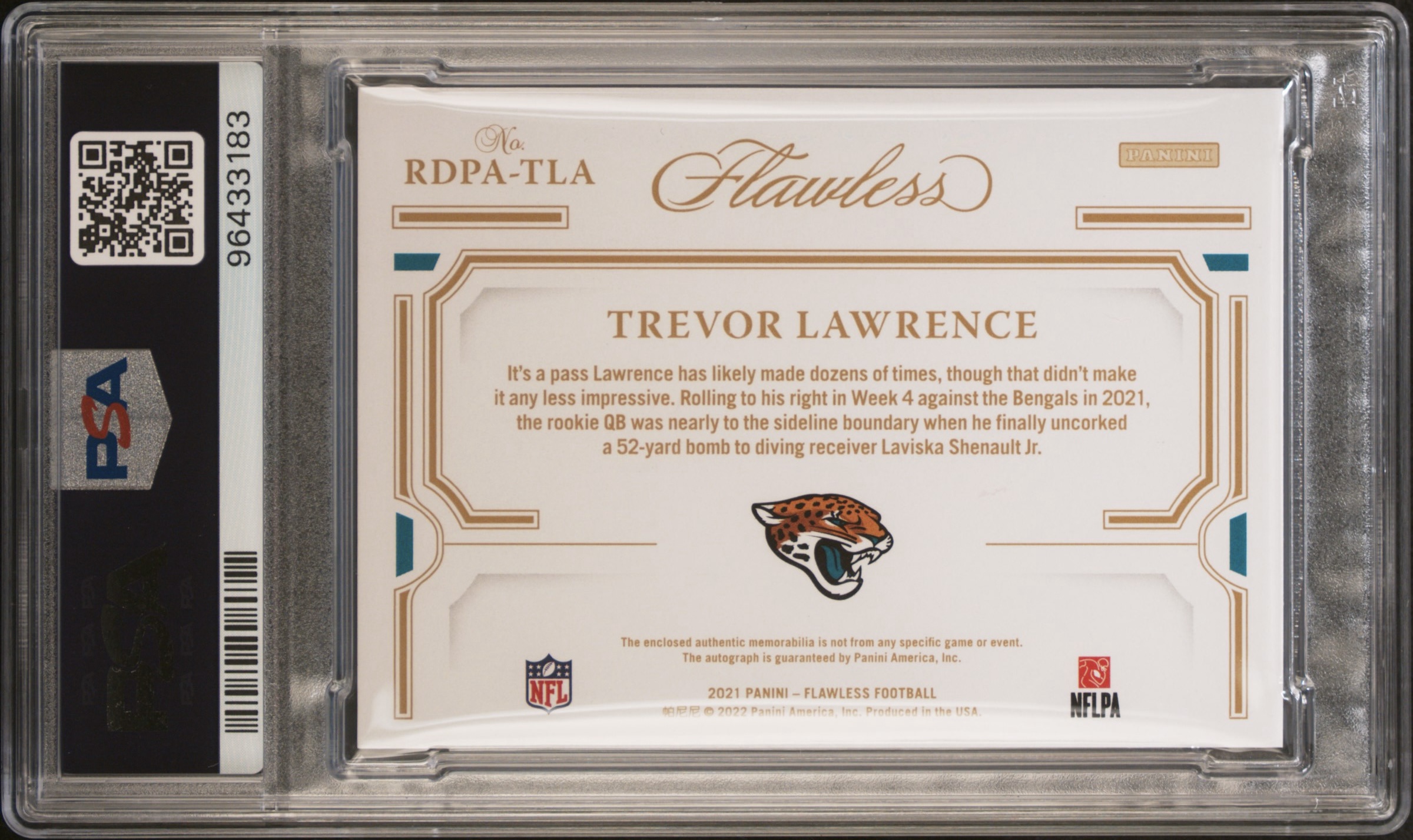 2021 Panini Flawless Trevor Lawrence Rookie Dual Patch Auto Sapphire /10 #RDPA-TLA PSA 9