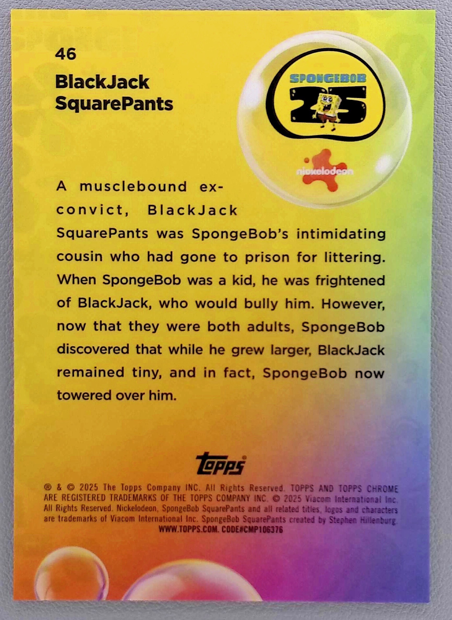 2025 Topps Chrome Sapphire Spongebob 25th BlackJack SquarePants Gold /50 #46