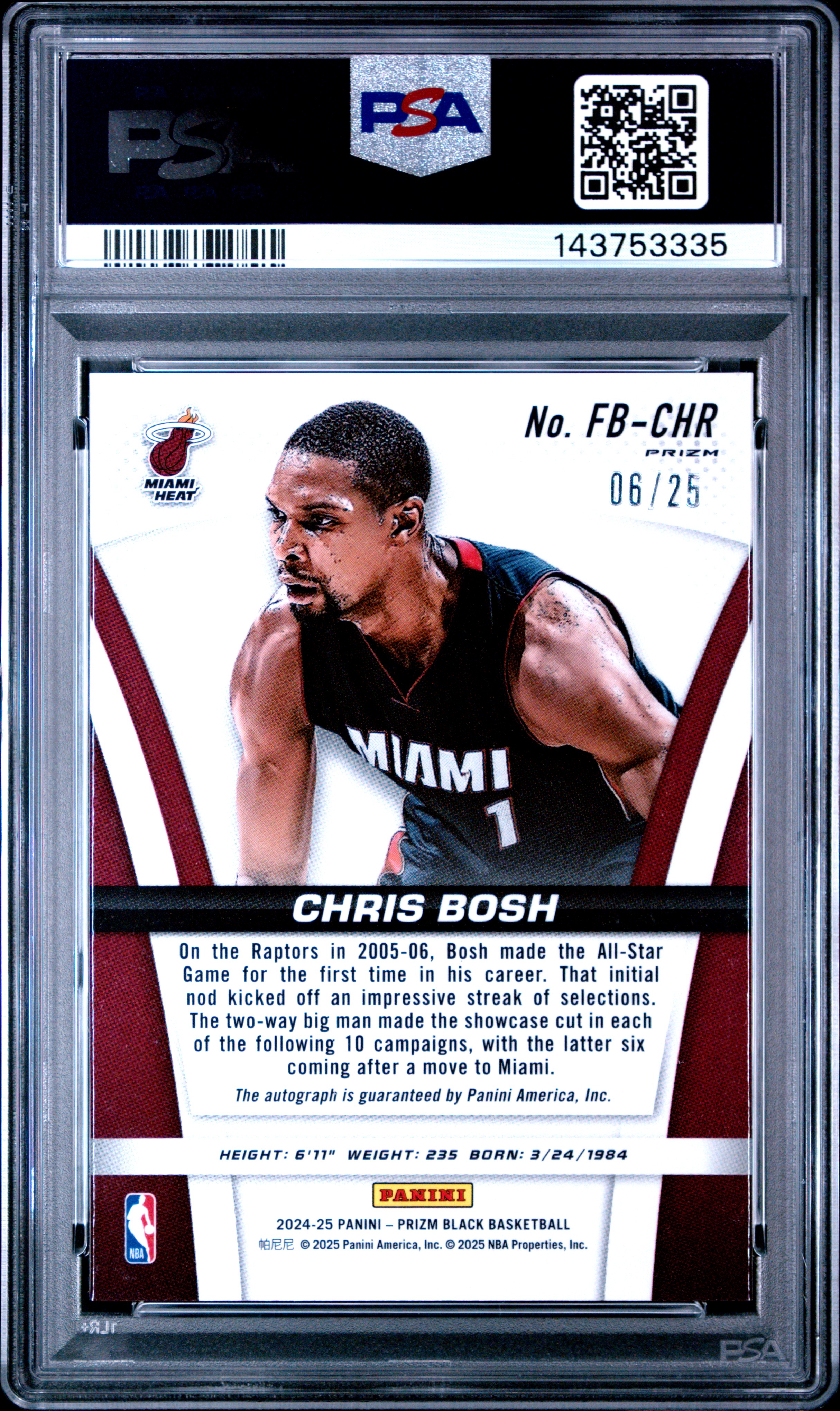 2024 Panini Prizm Black Chris Bosh Flashback Auto Mojo /25 #FB-CHR PSA 10