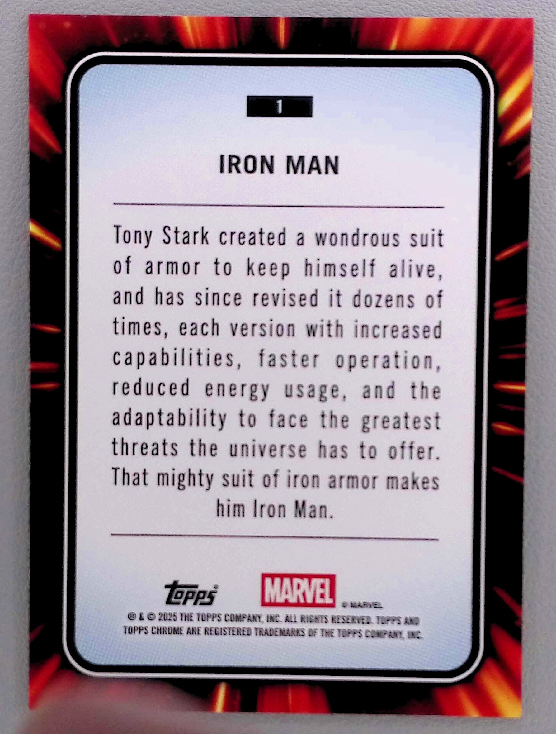 2025 Topps Chrome Sapphire Marvel Iron Man Base #1