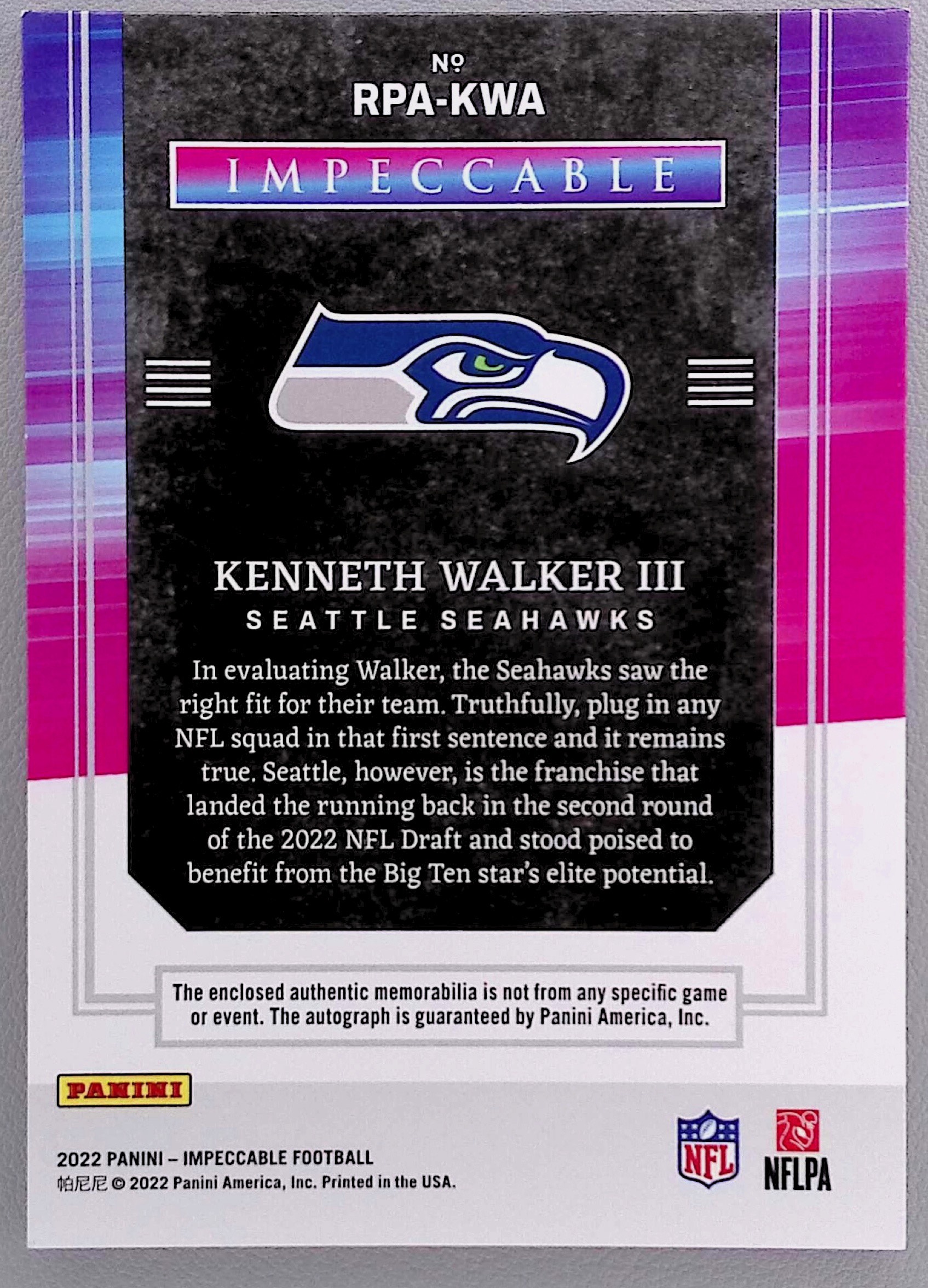2022 Panini Impeccable Kenneth Walker III Rookie Patch Auto /99 #RPA-KWA