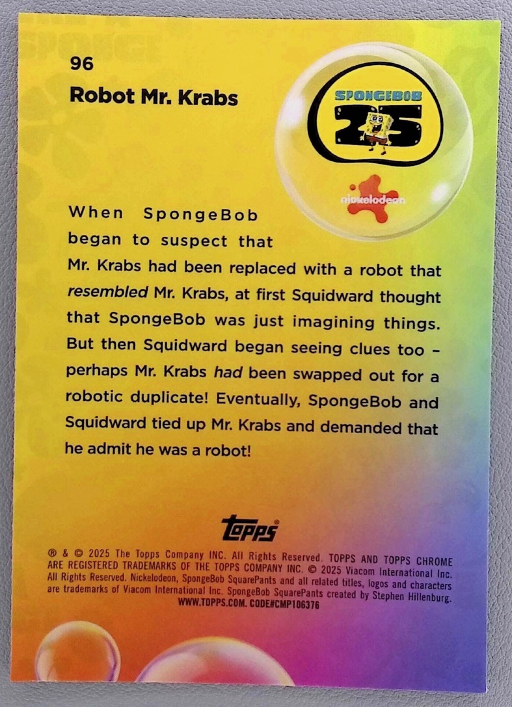 2025 Topps Chrome Spongebob 25th Anniversary Robot Mr Krabs Bubble /99 #96