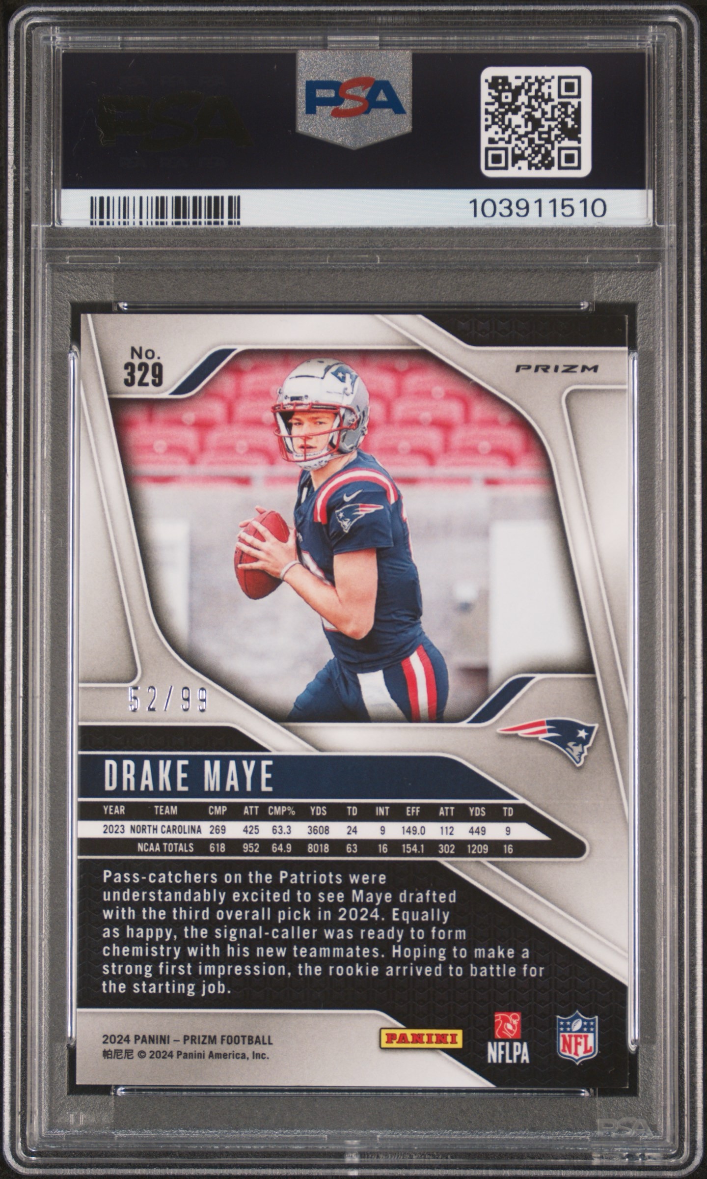 2024 Panini Prizm Drake Maye Blue Ice PSA 10