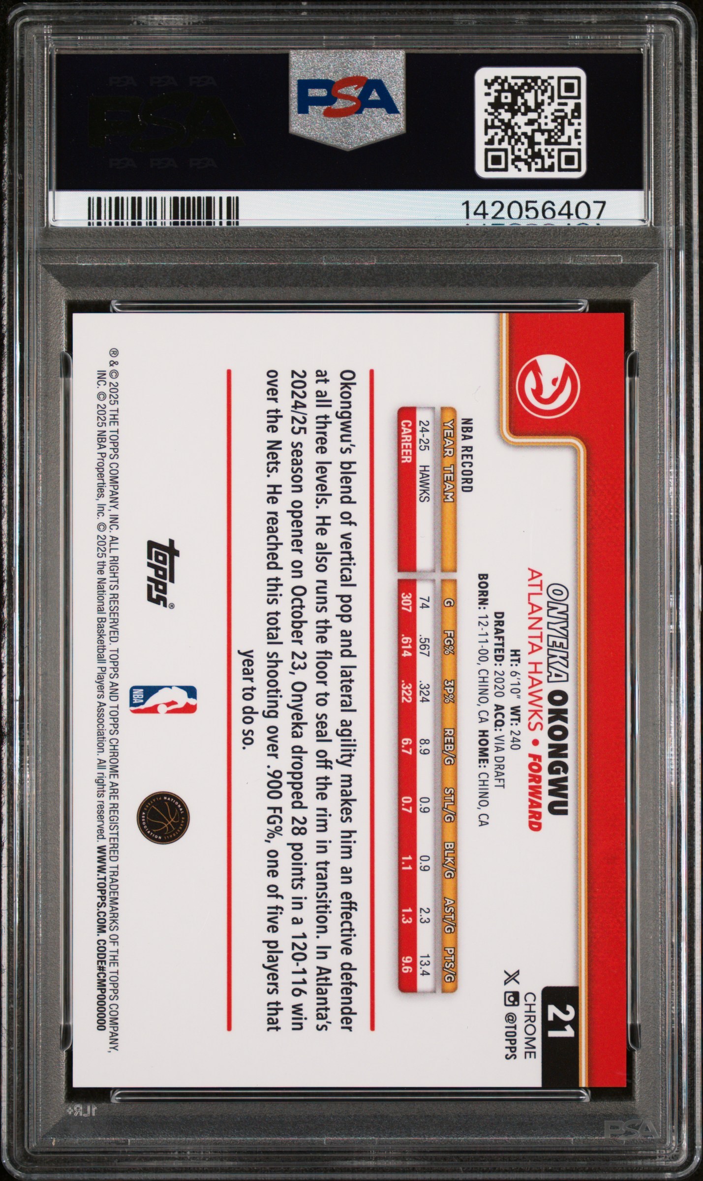 2025 Topps Chrome Onyeka Okongwu Gold Wave /50 #21 PSA 10 IYC