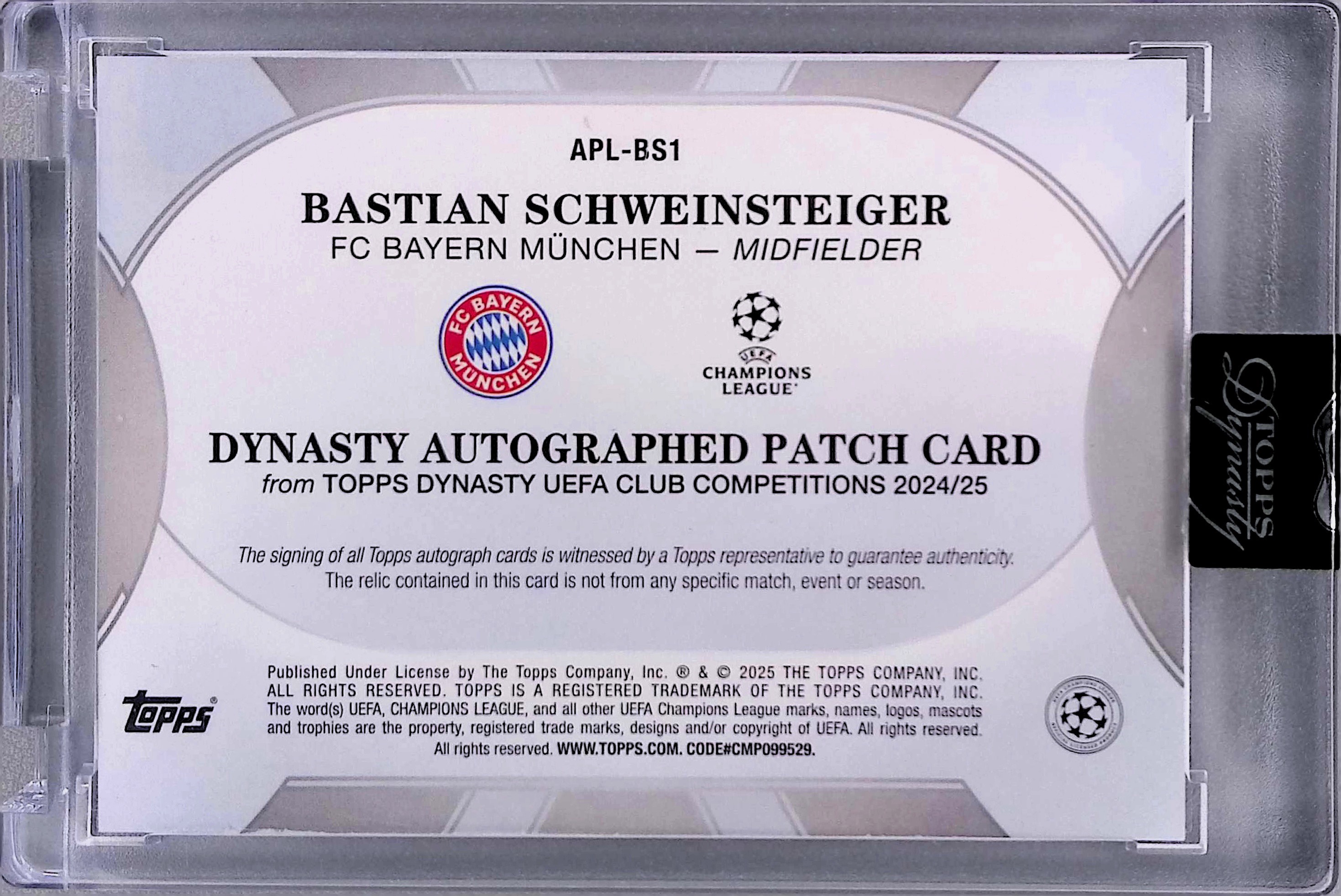 2025 Topps Dynasty UEFA Bastian Schweinsteiger Patch Auto Black /5 #APL-BS1 Raw