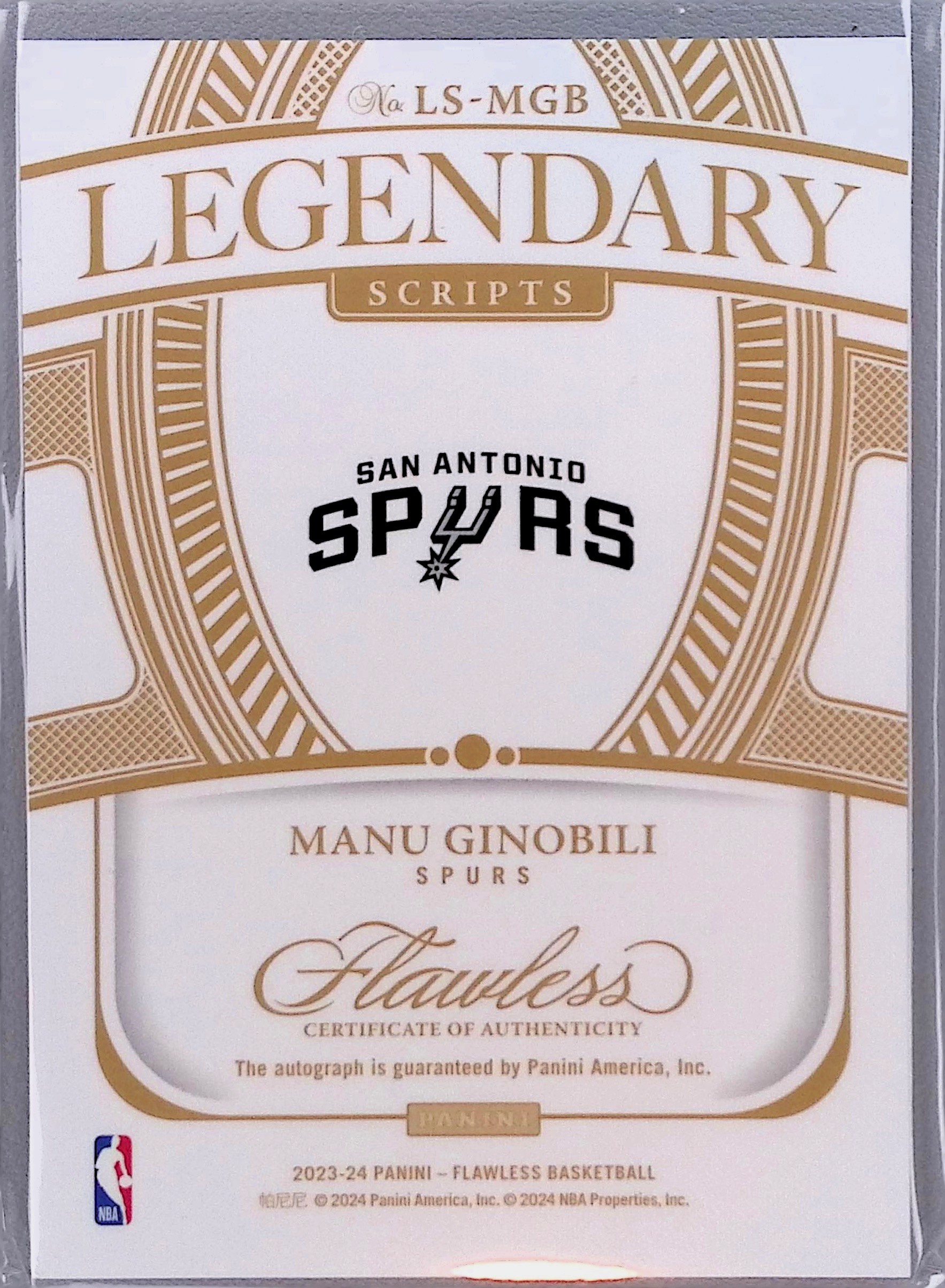 2023 Panini Flawless Manu Ginobli Legendary Scripts Auto Sapphire /8 #LS-MGB Raw