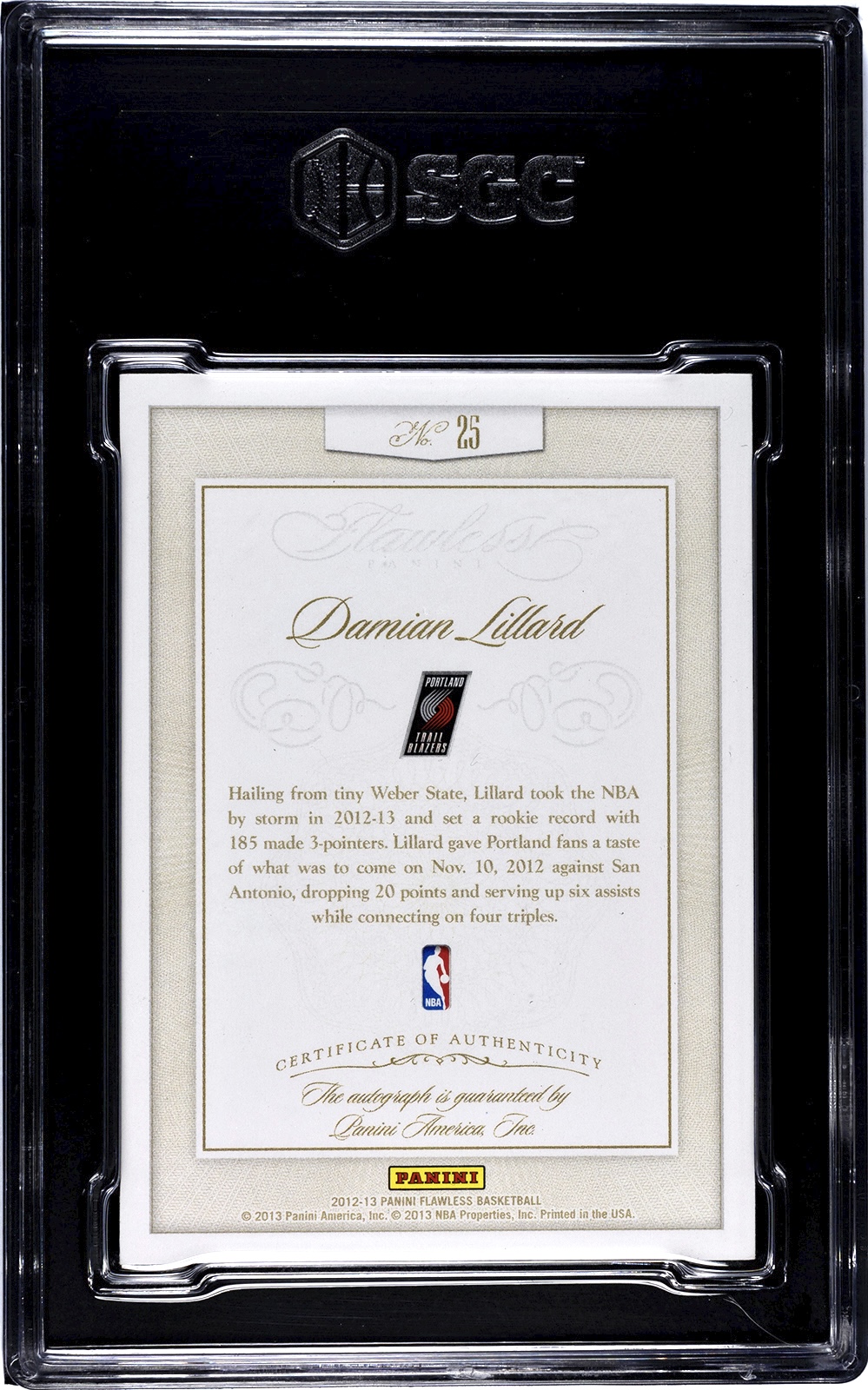 2012 Panini Flawless Damian Lillard Rookie Autographed /25 #25 SGC 8