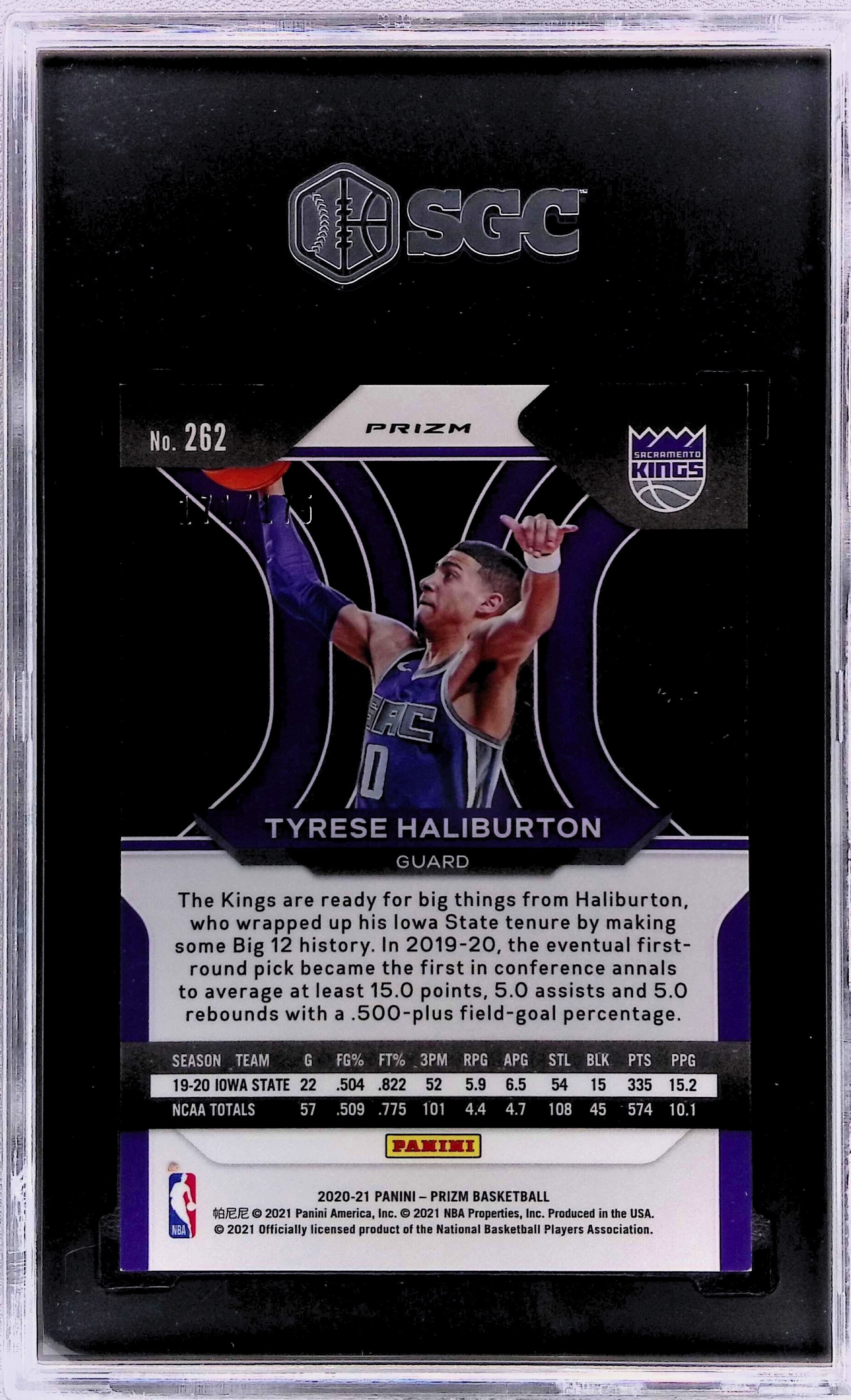 2020 Panini Prizm Tyrese Haliburton Blue Fast Break /175 #262 SGC 9.5