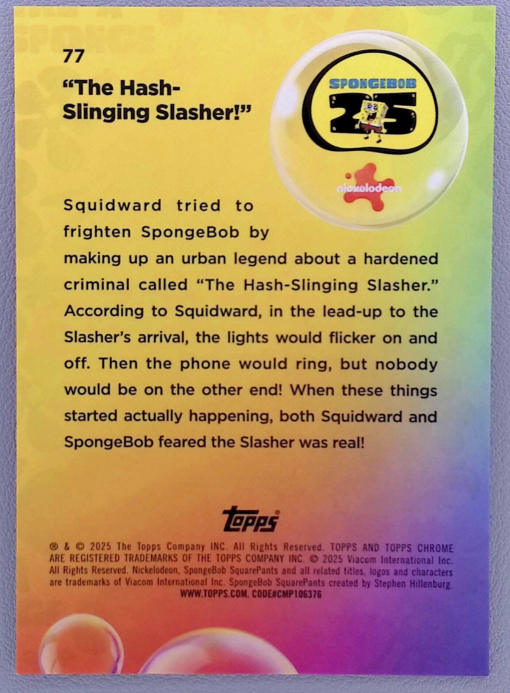 2025 Topps Chrome Sapphire Spongebob 25th Hash-Slinging Slasher Black /10 #77