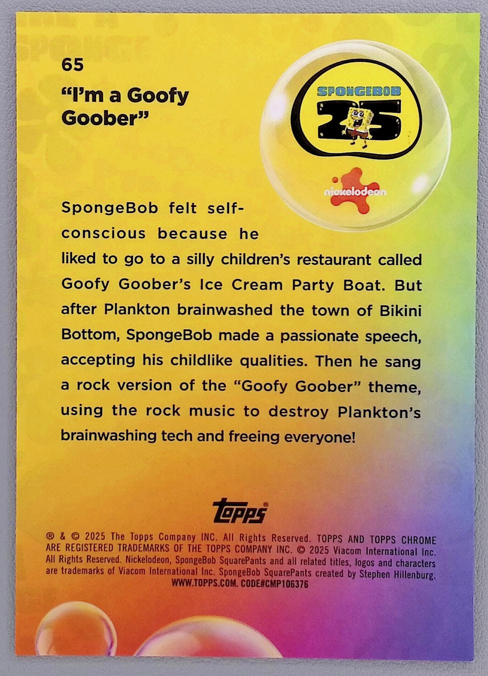 2025 Topps Chrome SpongeBob Sapphire 25th I'm a Goofy Goober Gold /50 #65