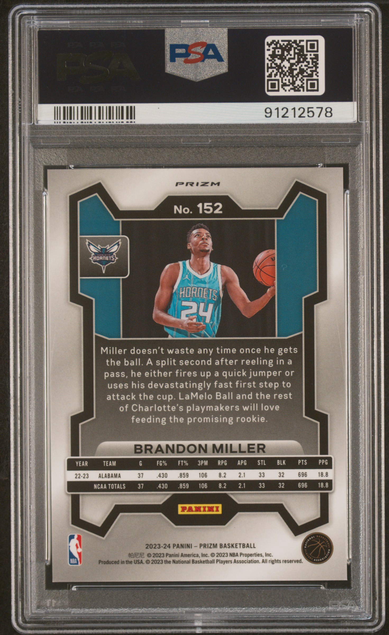 2023 Panini Prizm Brandon Miller Snakeskin #152 PSA 10
