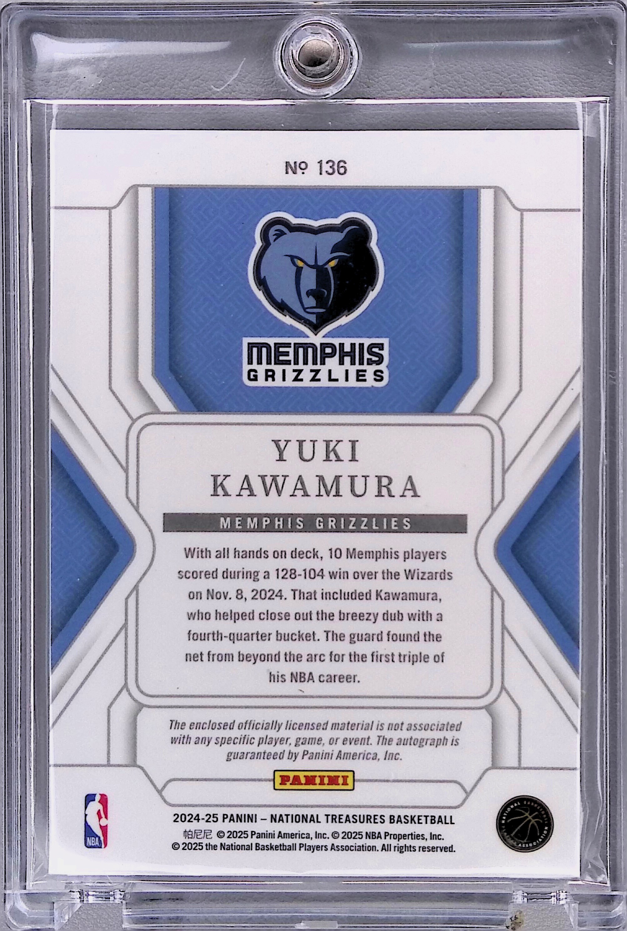 2024 Panini National Treasures Yuki Kawamura Rookie Patch Autographs /99 #136 Raw
