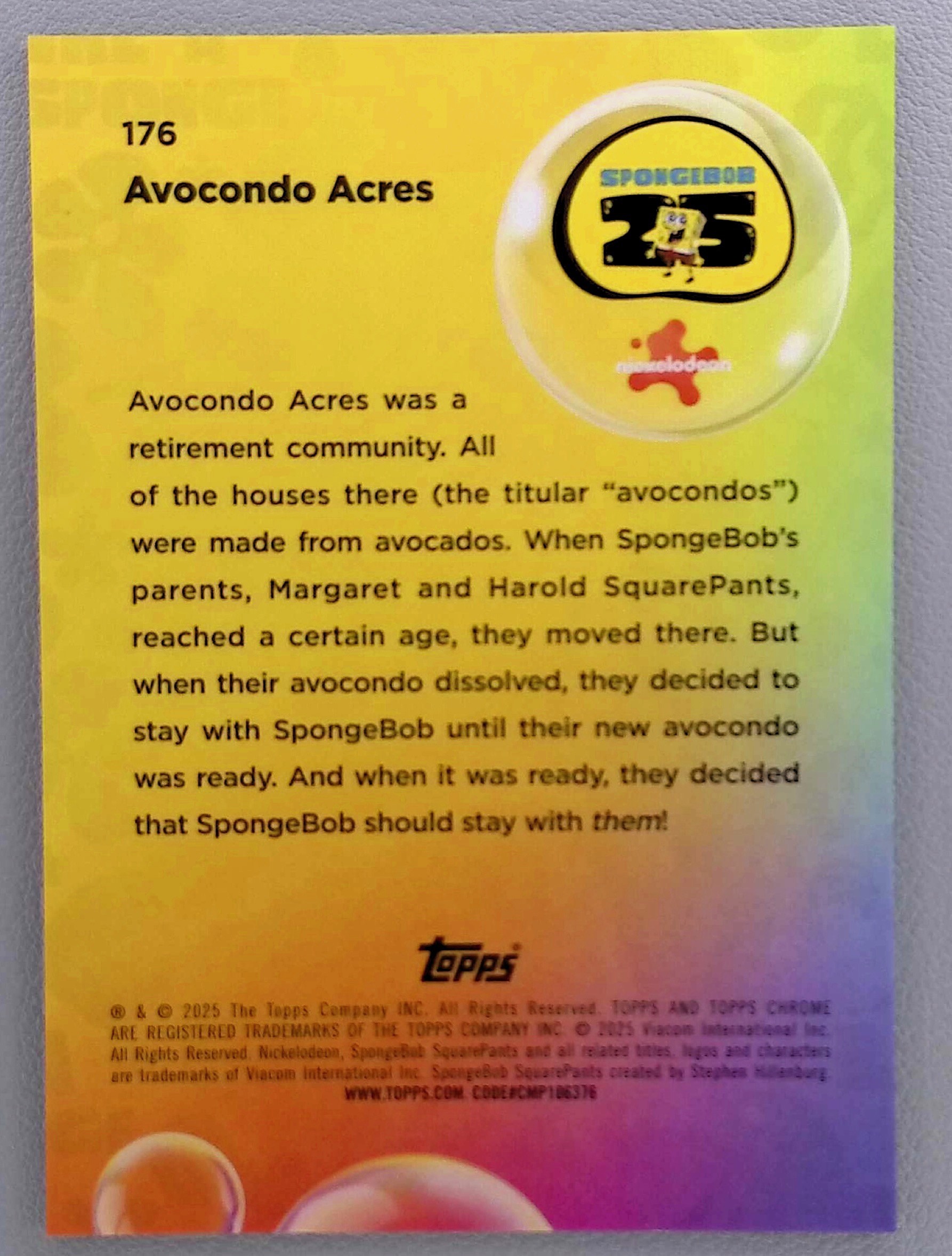2025 Topps Chrome Sapphire Spongebob 25th Avocondo Acres Orange /25 #176