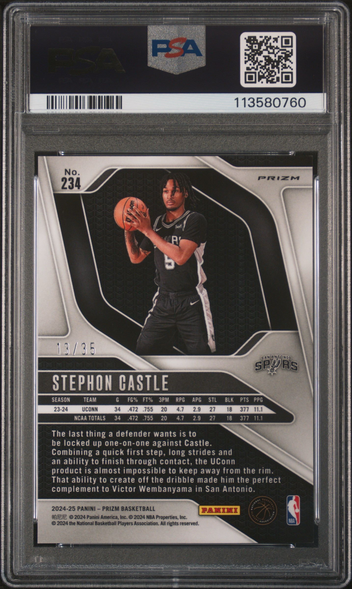 2024 Panini Prizm Stephon Castle Blue Shimmer /25 #234 PSA 10
