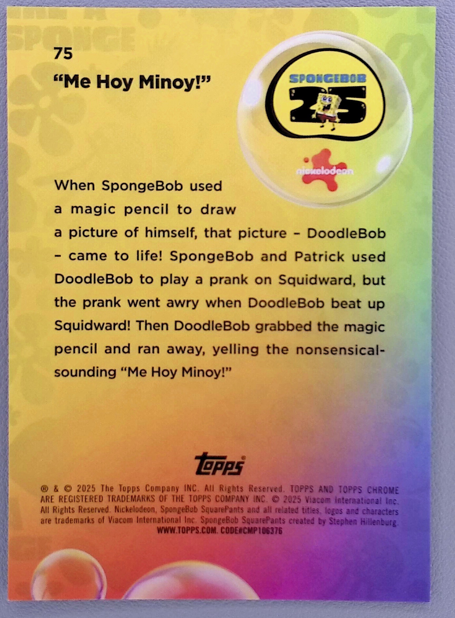 2025 Topps Chrome SpongeBob 25th Anniversary Me Hoy Minoy! Blue /150 #75
