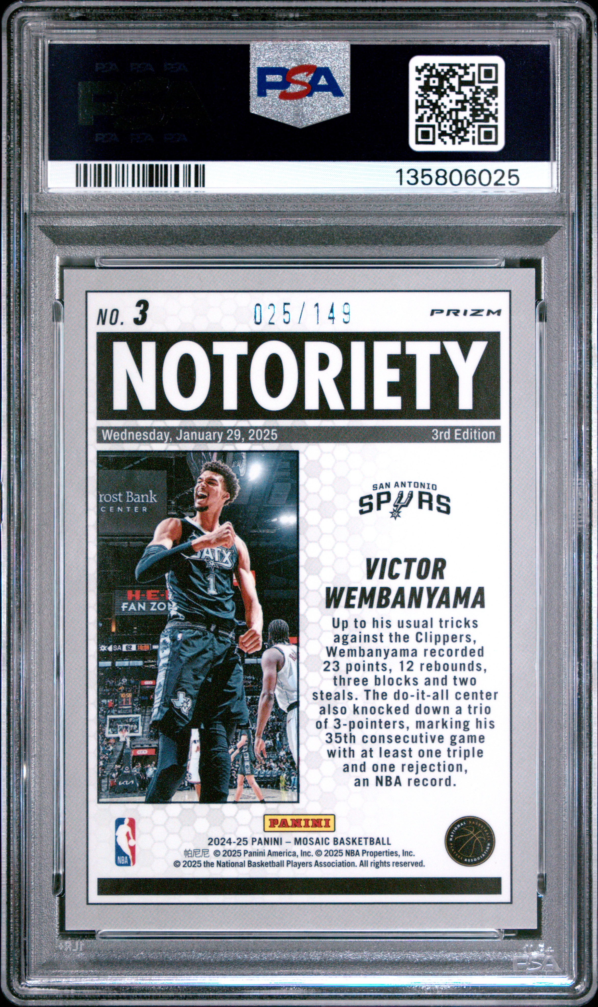 2024 Panini Mosaic Victor Wembanyama Notoriety Pink /149 #13 PSA 10