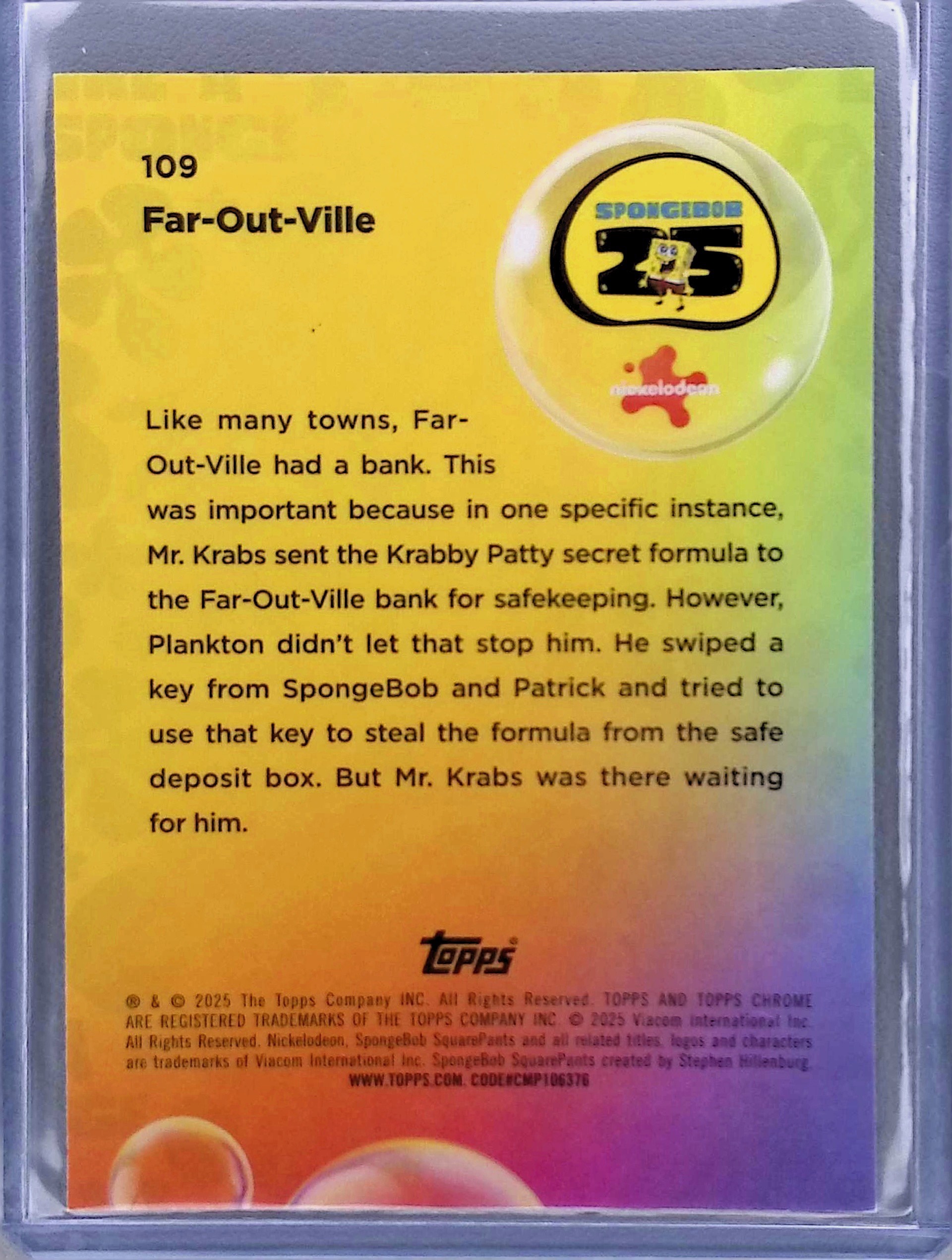 2025 Topps Chrome Sapphire Spongebob 25th Anniversary Far-Out Ville Green /99