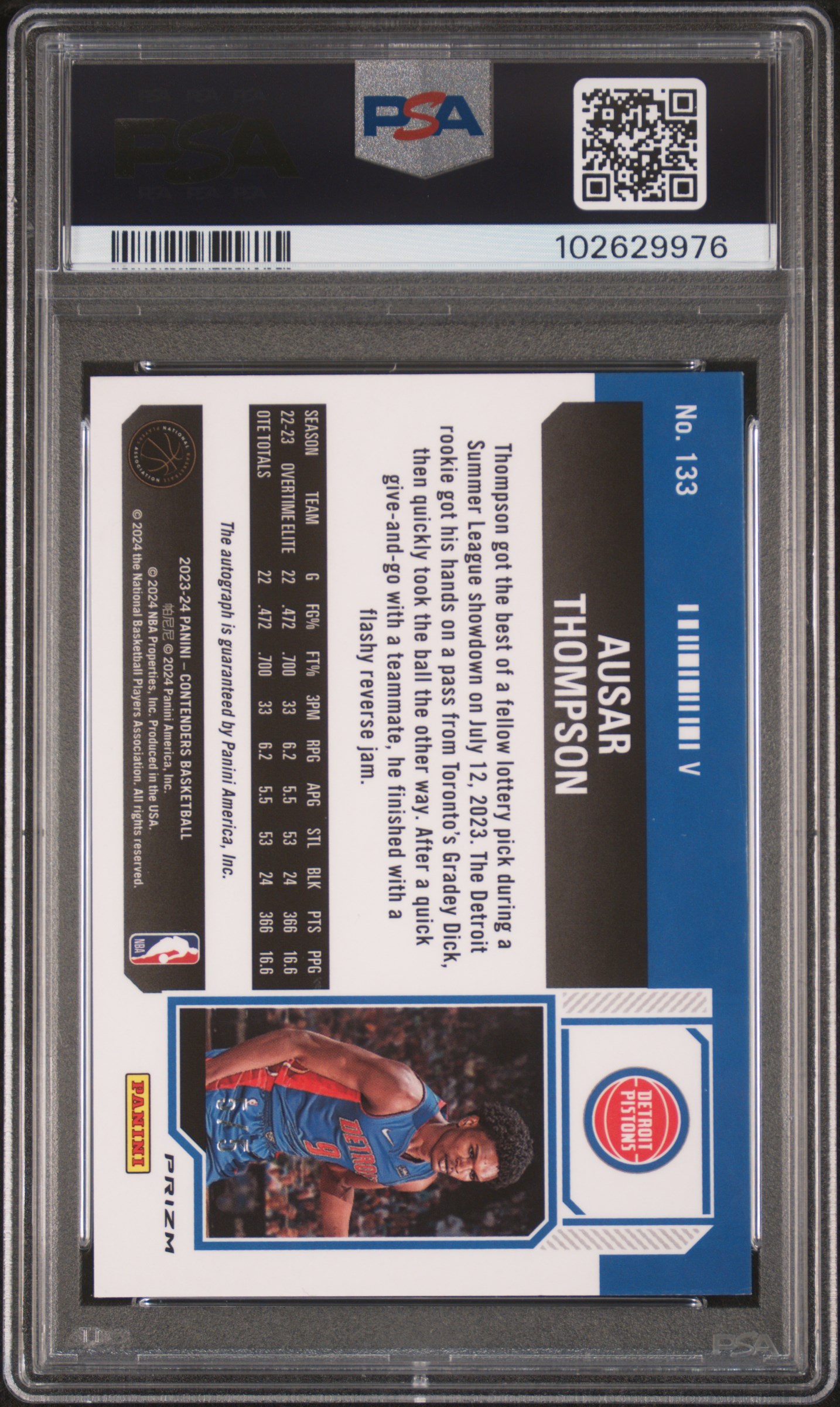 2023 Panini Contenders Ausar Thompson Red Shimmer Rookie Ticket /5 #133 PSA 8