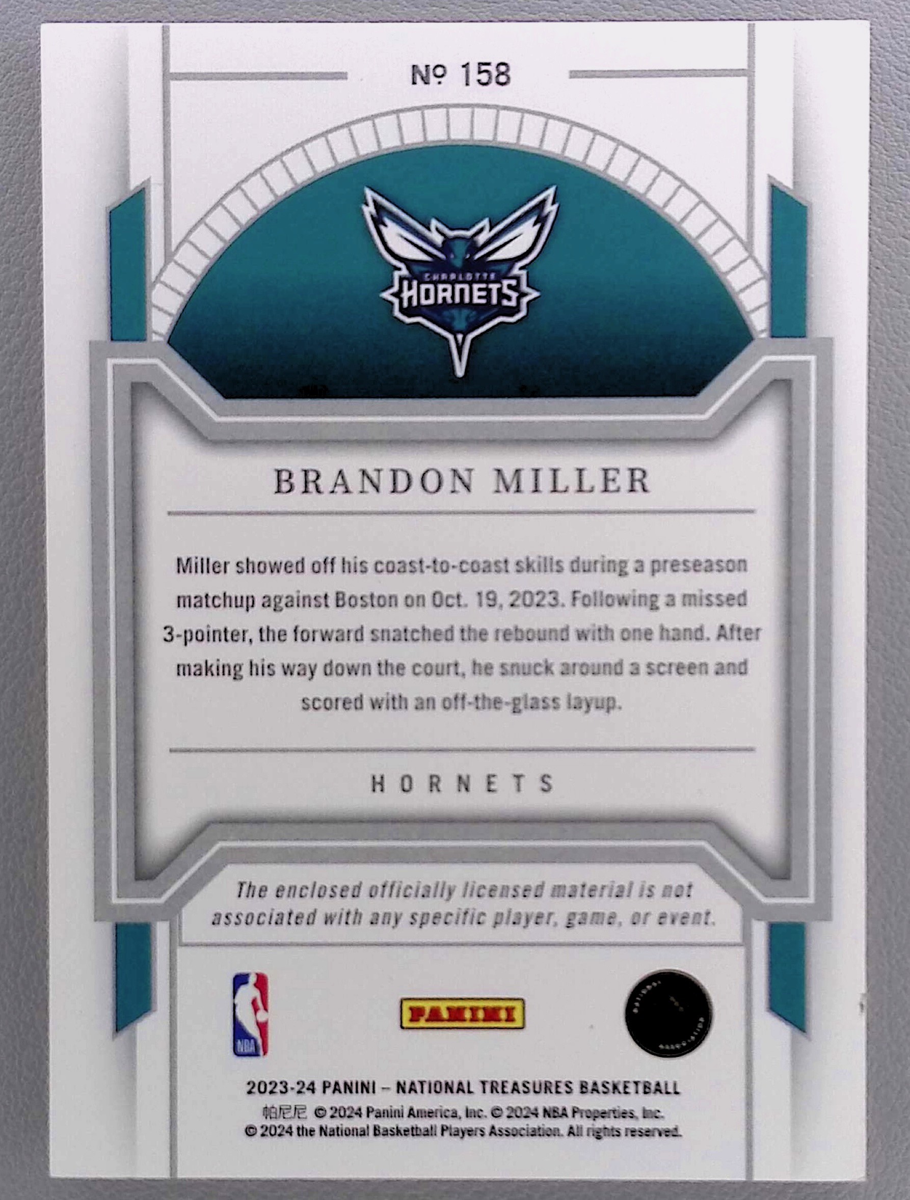 2023 Panini National Treasures Brandon Miller Rookie Patch Orange /75 #158