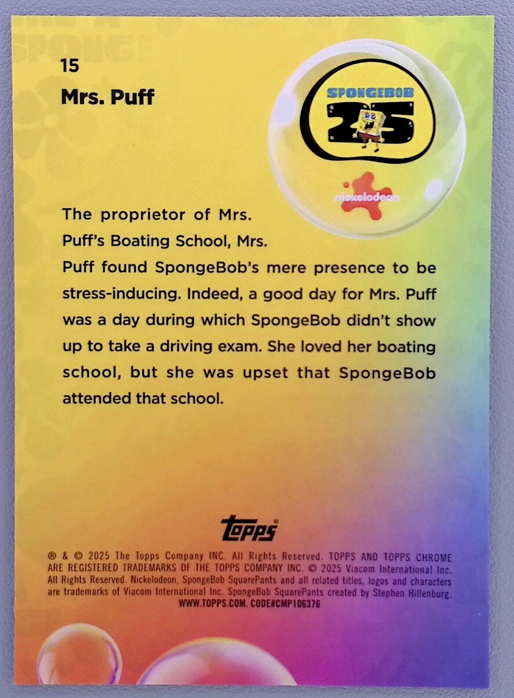 2025 Topps Chrome Sapphire Spongebob 25th Anniversary Mrs Puff Gold /50 #15