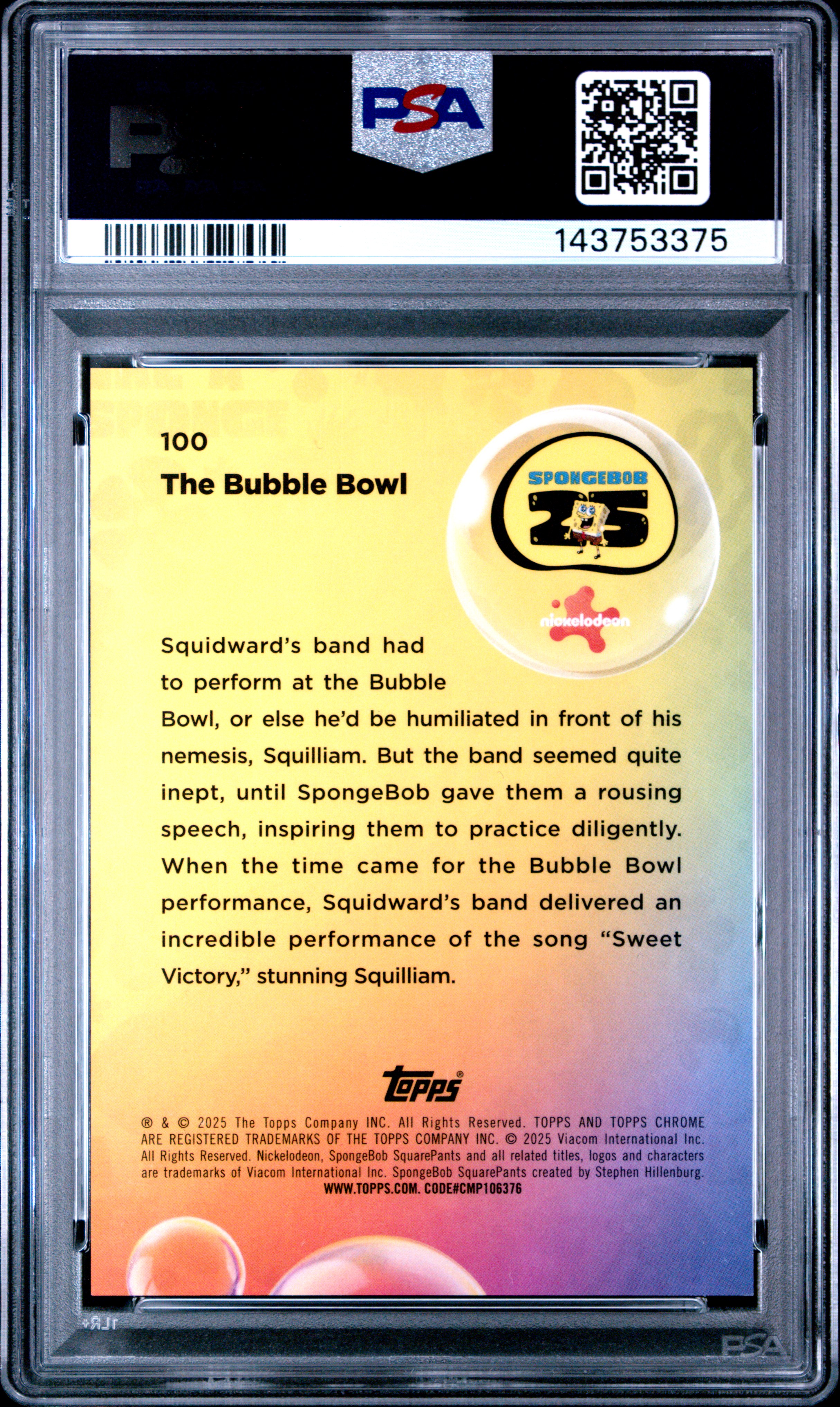 2025 Topps Chrome Sapphire SpongeBob Bubble Bowl Orange /25 #100 PSA 10