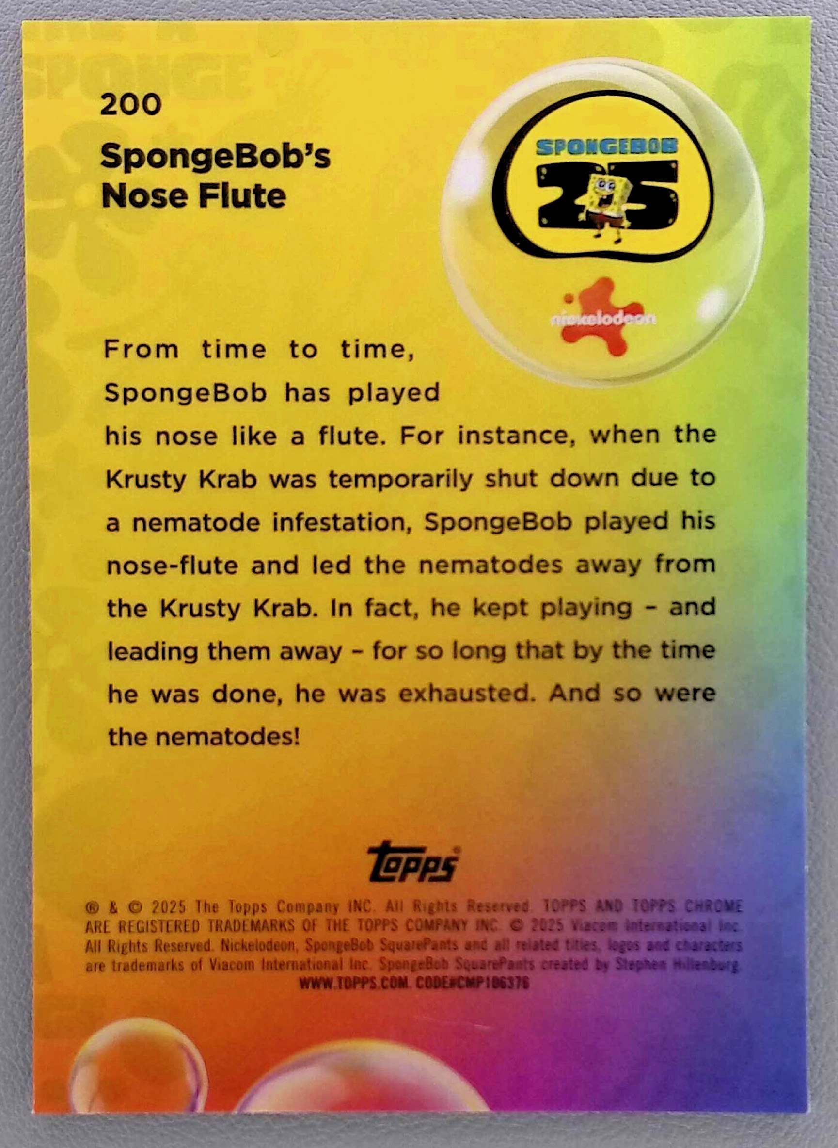 2025 Topps Chrome Spongebob 25th Anniversary Nose Flute Bubble /99 #200