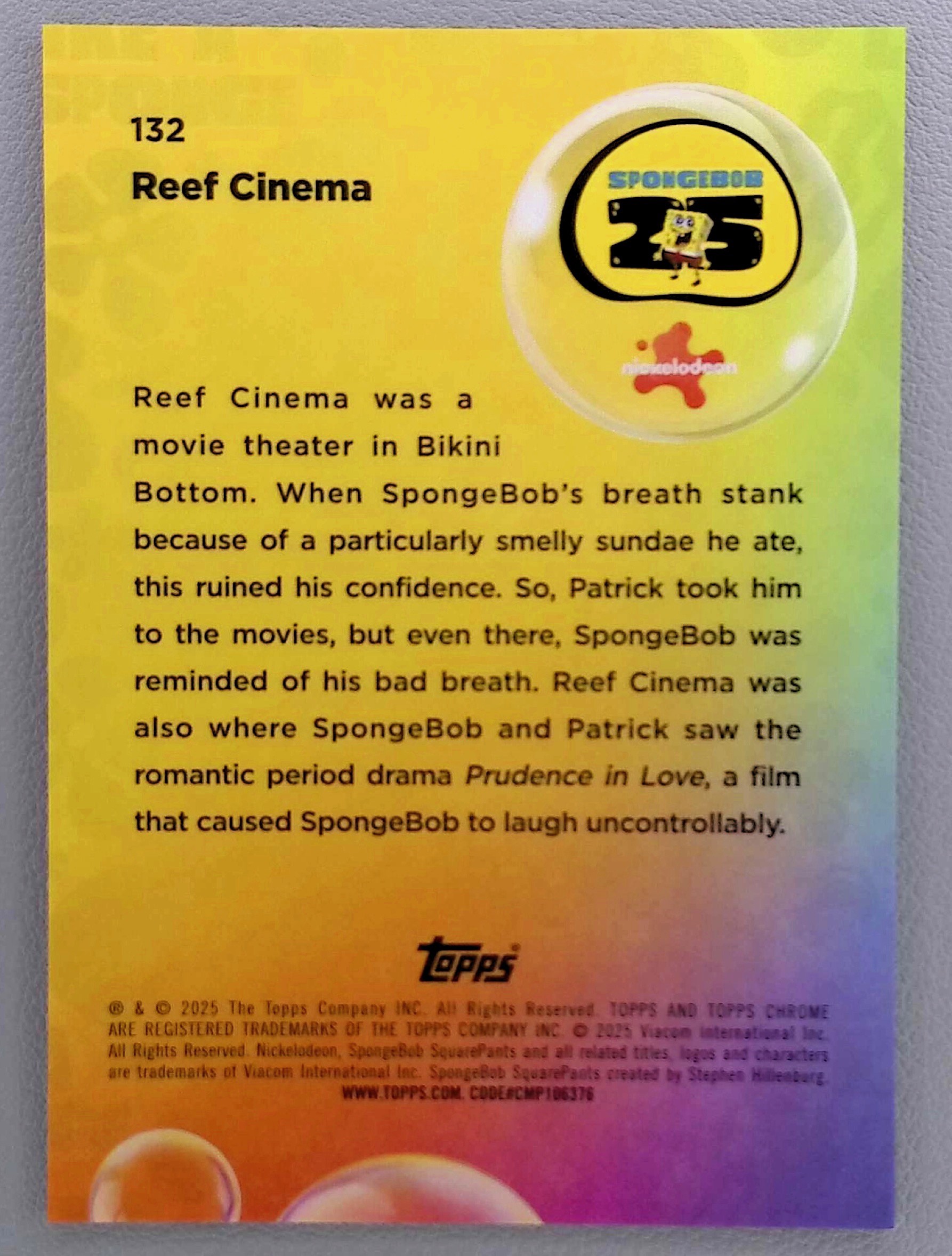 2025 Topps Chrome Sapphire Spongebob 25th Anniversary Reef Cinema Gold /50 #132