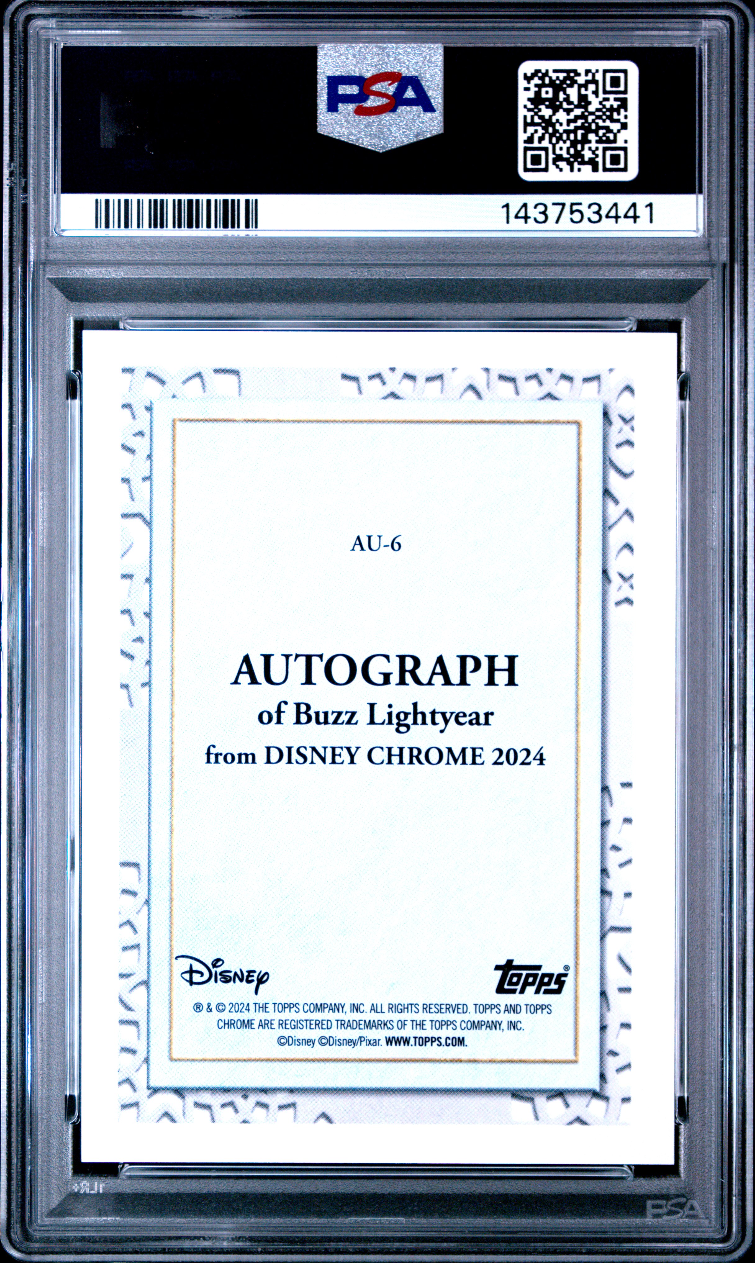 2024 Topps Chrome Disney Buzz Lightyear Facsimile Auto Gold /50 #AU6 PSA 9