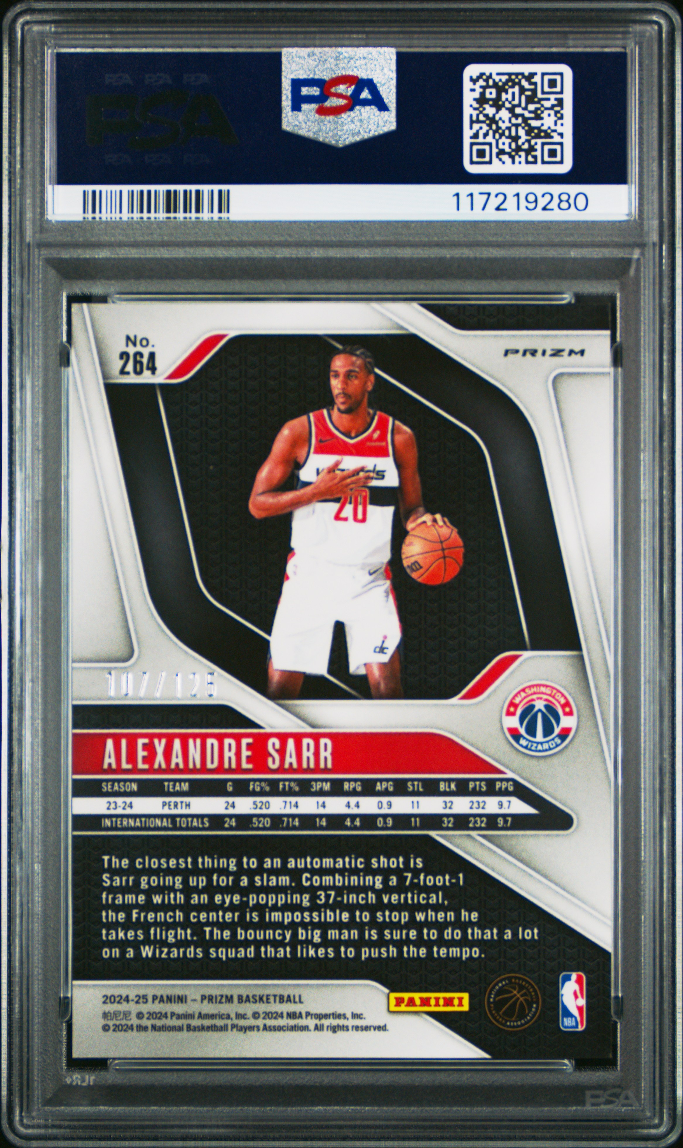 2024 Panini Prizm Alexandre Sarr Blue Ice /125 #264 PSA 10
