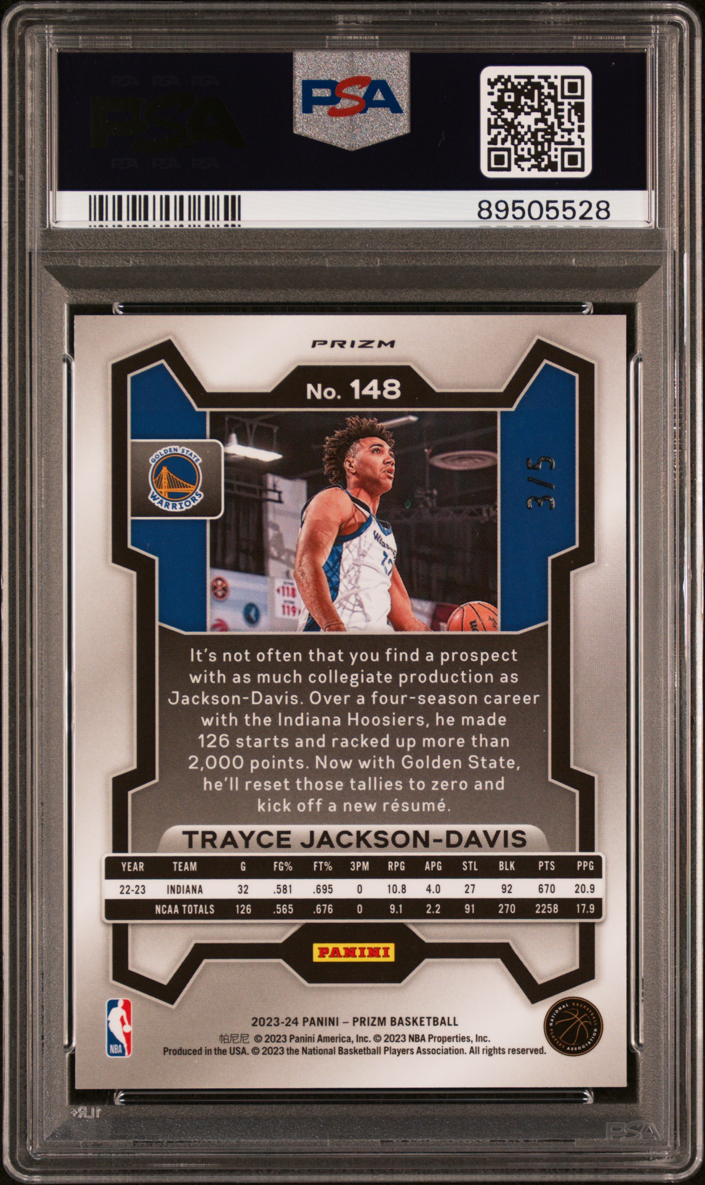2023 Panini Prizm Trayce Jackson-Davis Green Shimmer FOTL /5 Rookie #148 PSA 10