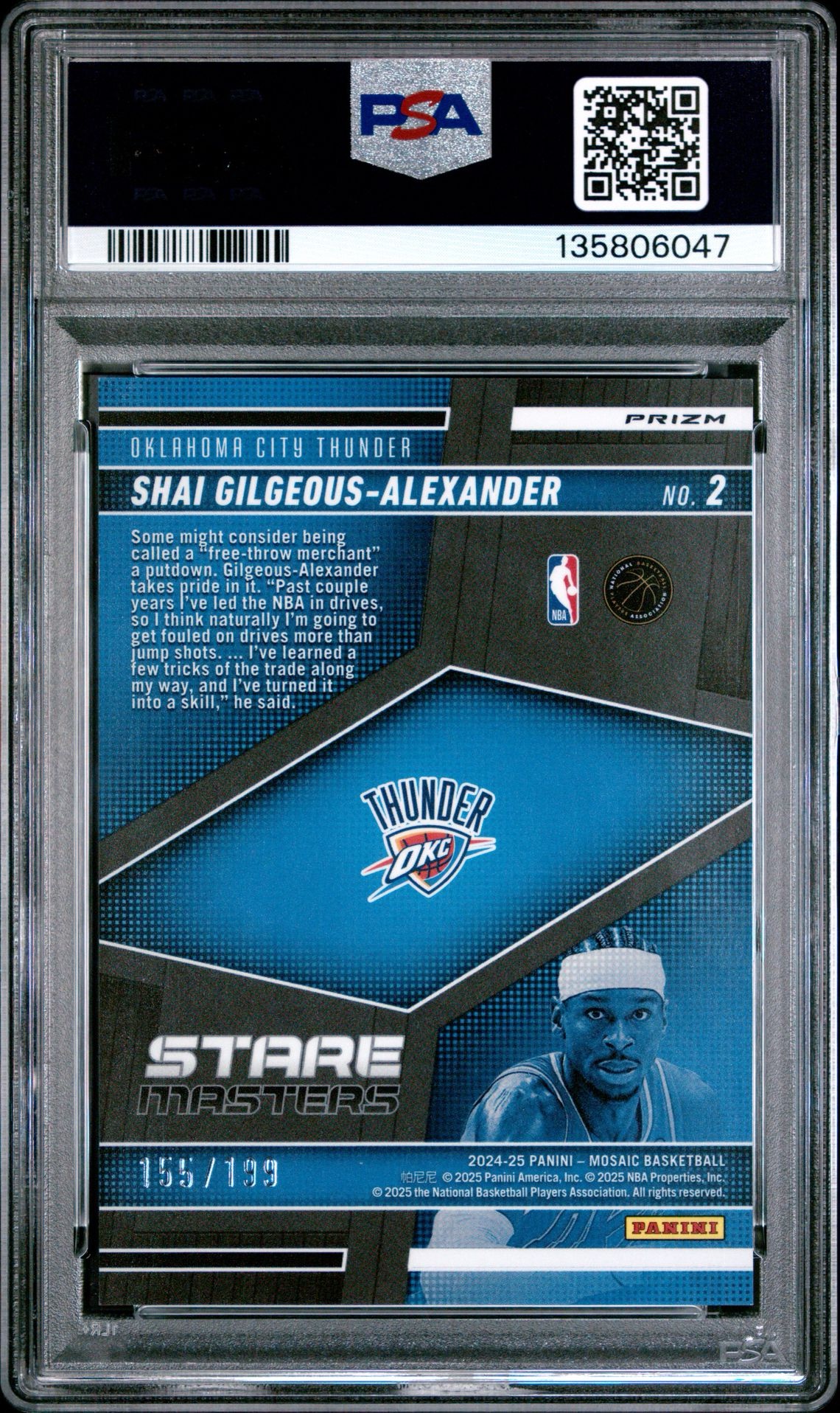 2024 Panini Mosaic Shai Gilgeous-Alexander Stare Masters Blue /199 #2 PSA 10