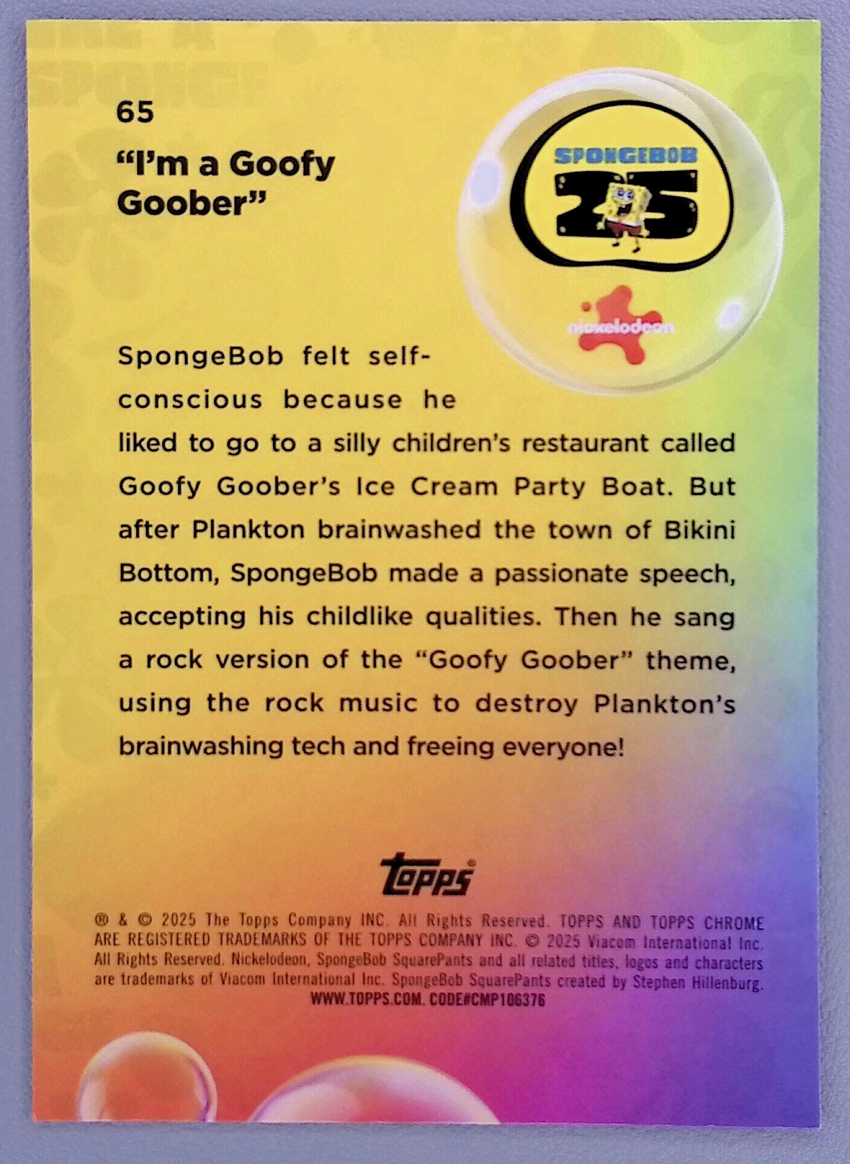 2025 Topps Chrome Sapphire Spongebob 25th Anniversary I'm a Goofy Goober #65