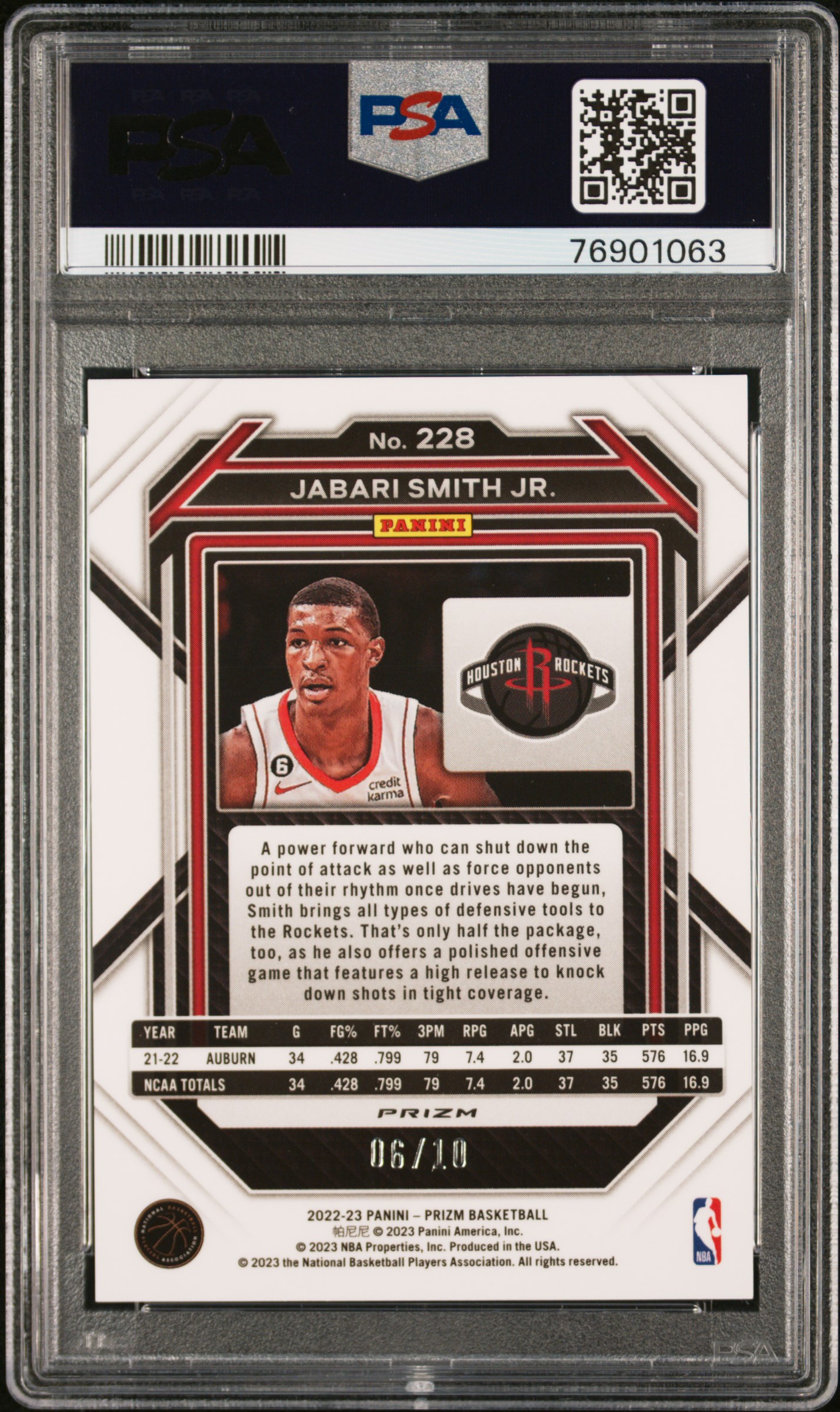 2022 Panini Prizm Jabari Smith Jr. Gold Shimmer /10 #228 PSA 10