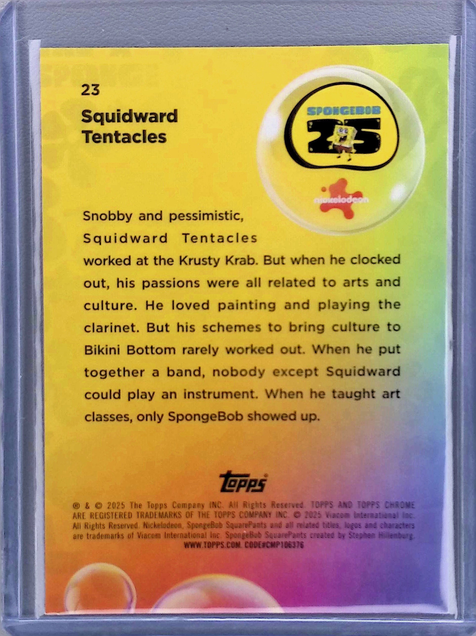 2025 Topps Chrome Sapphire Spongebob 25th Anniversary Squidward Tentacles Blue