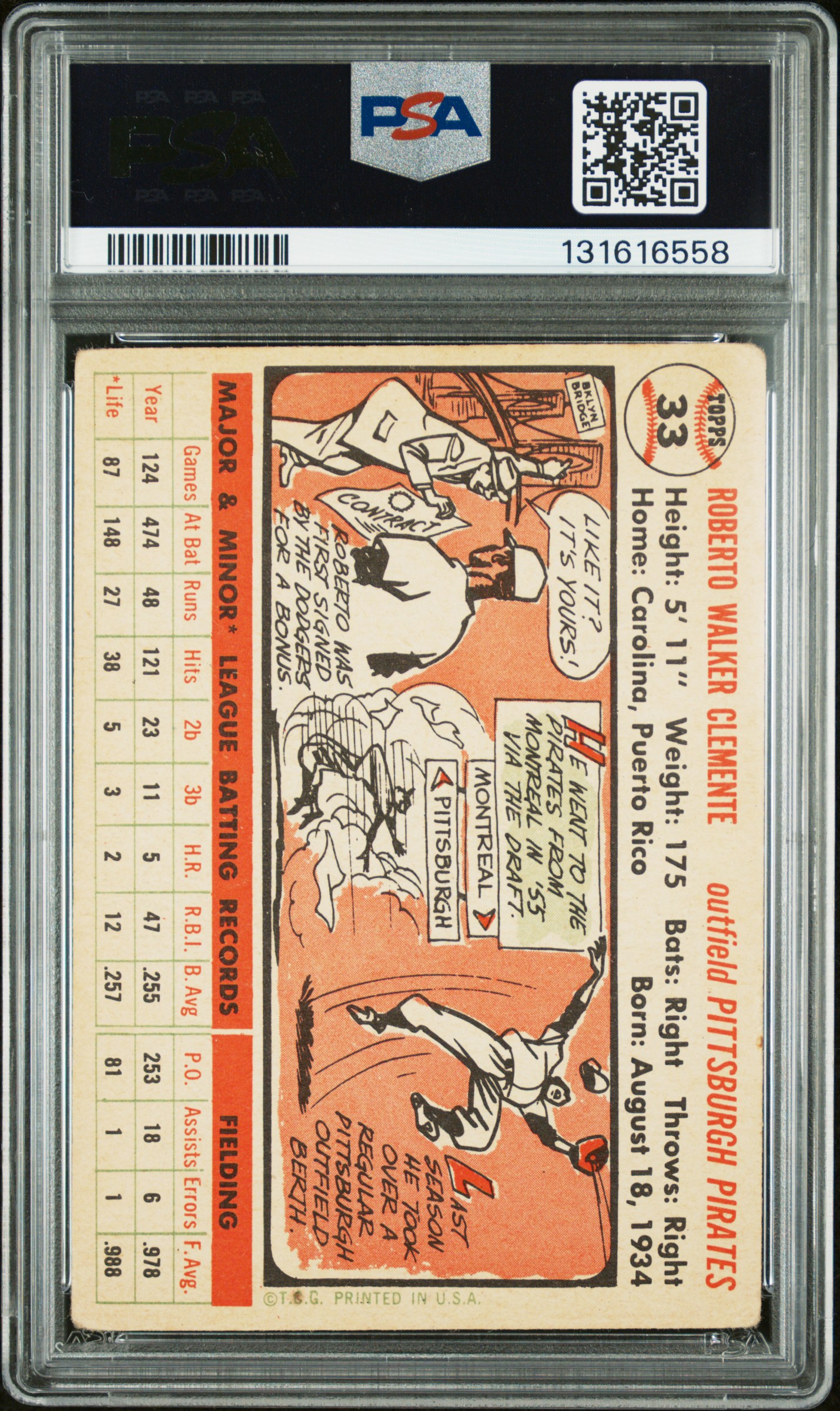 1956 Topps Roberto Clemente White Black #33 PSA 2