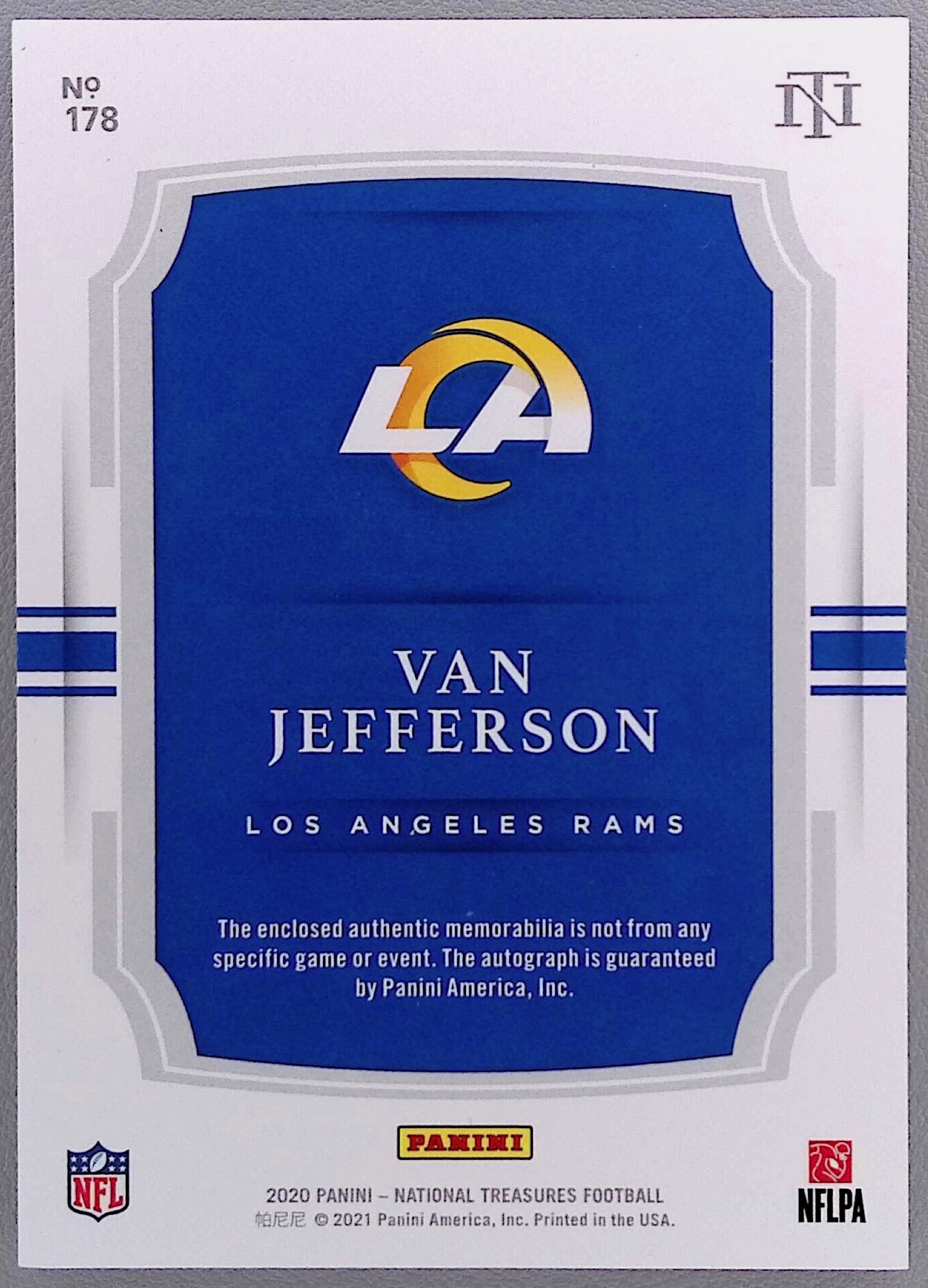 2020 Panini National Treasures Van Jefferson Rookie Patch Auto Gold /10 #178