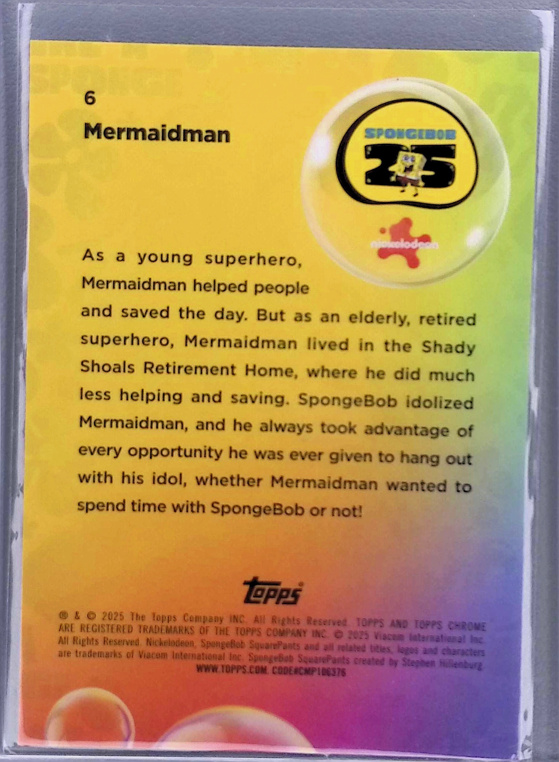2025 Topps Chrome Sapphire Spongebob 25th Anniversary Mermaidman Blue #6