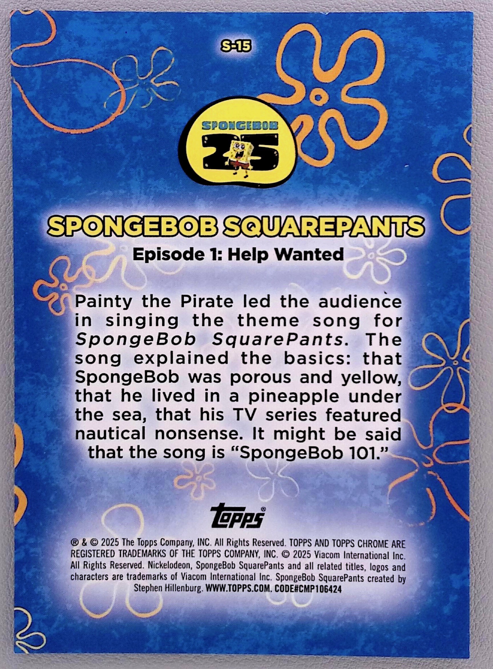 2025 Topps Chrome SpongeBob 25th Anniversary Painty Help Wanted Songs Orange /25