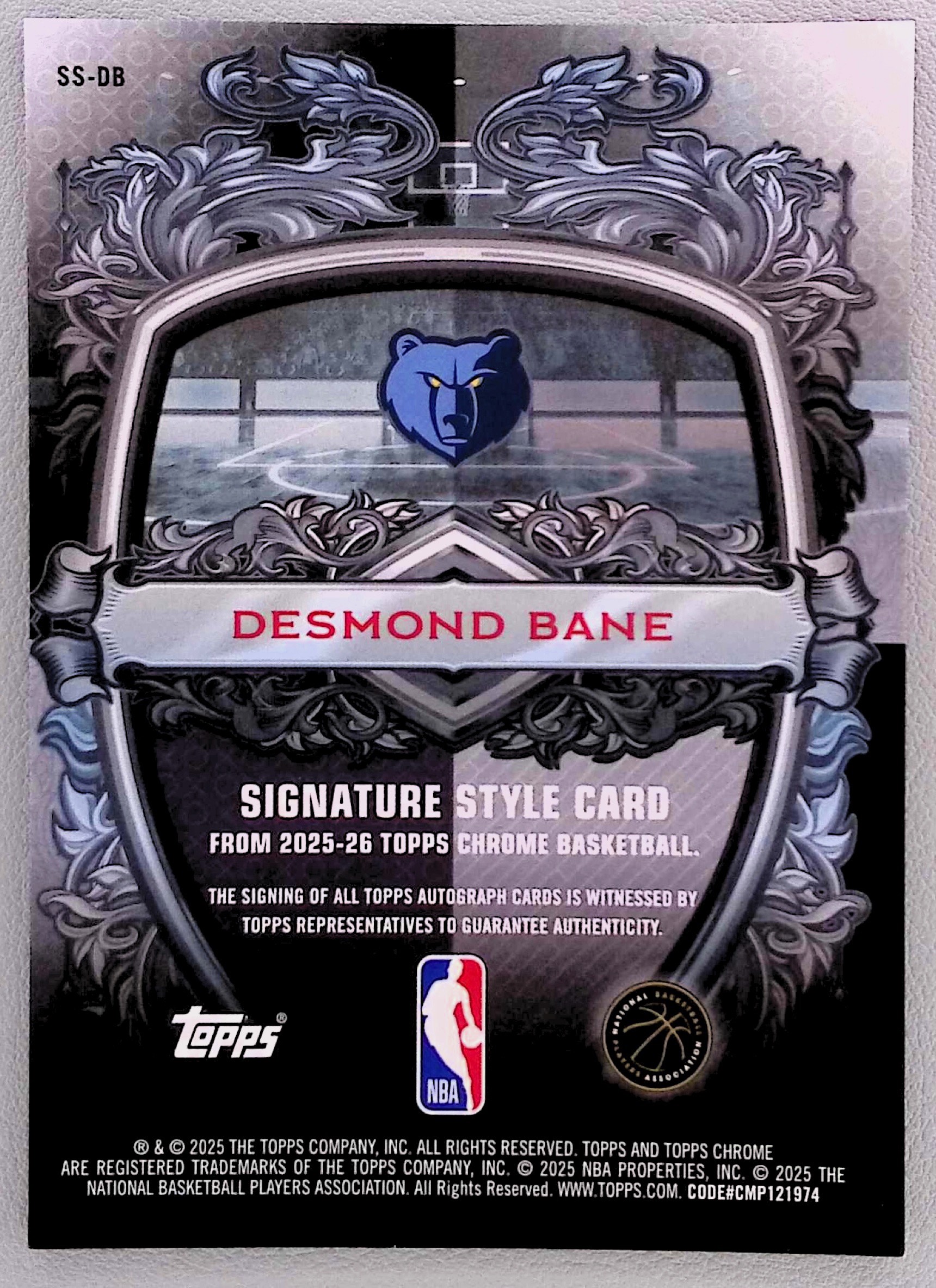 2025 Topps Chrome Desmond Bane Signature Style Auto Green /99 #SS-DB