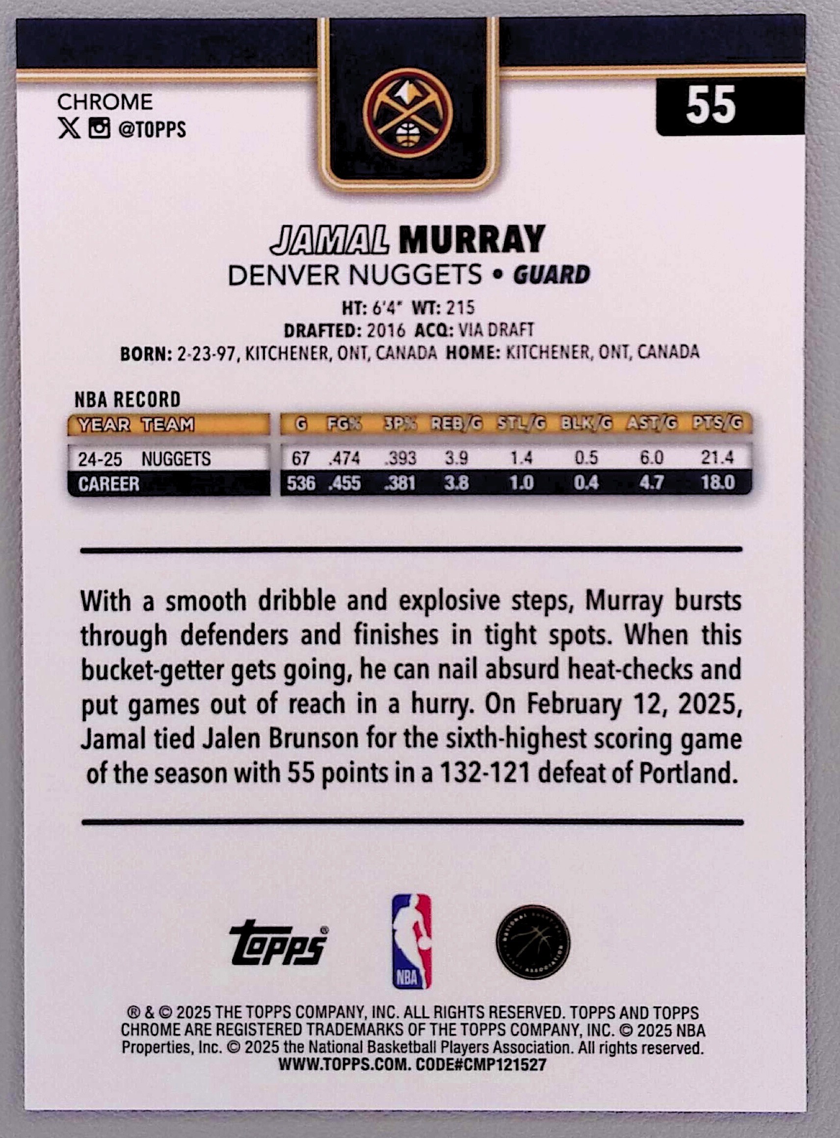 2025 Topps Chrome Sapphire Jamal Murray Black /10 #55