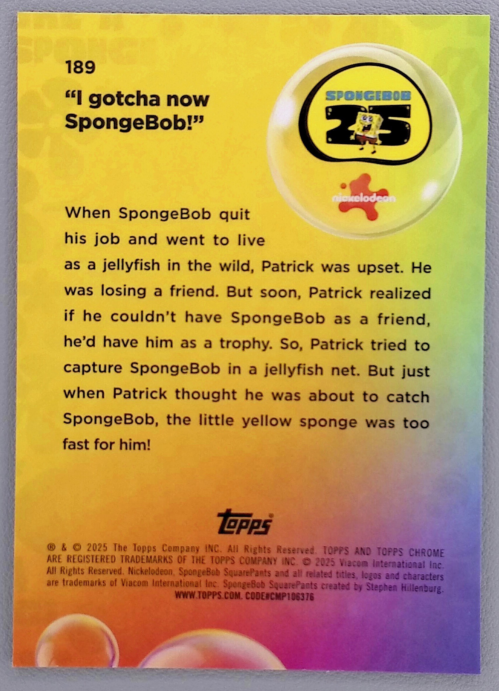 2025 Topps Chrome SpongeBob Sapphire 25th I gotcha now Green /99 #189