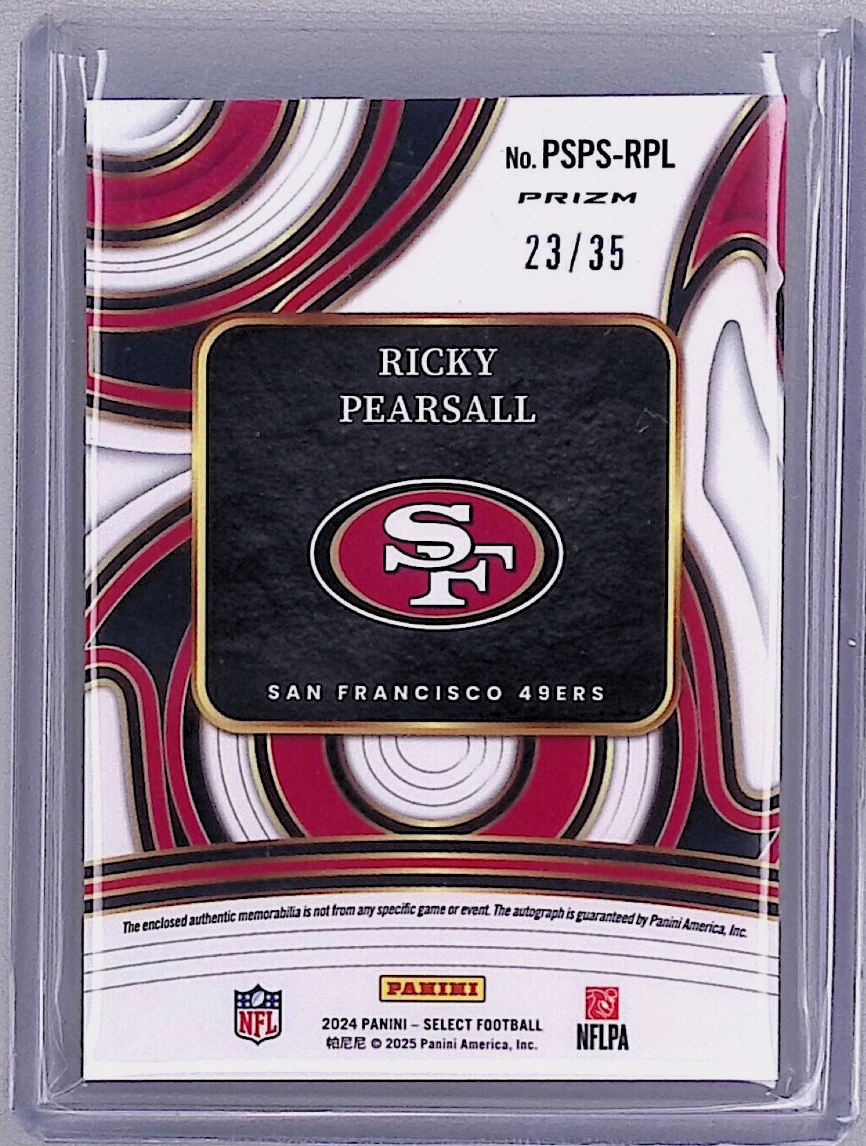 2024 Panini Select Ricky Pearsall Prime Selections Patch Auto FOTL /35 #PSPS-RPL Raw