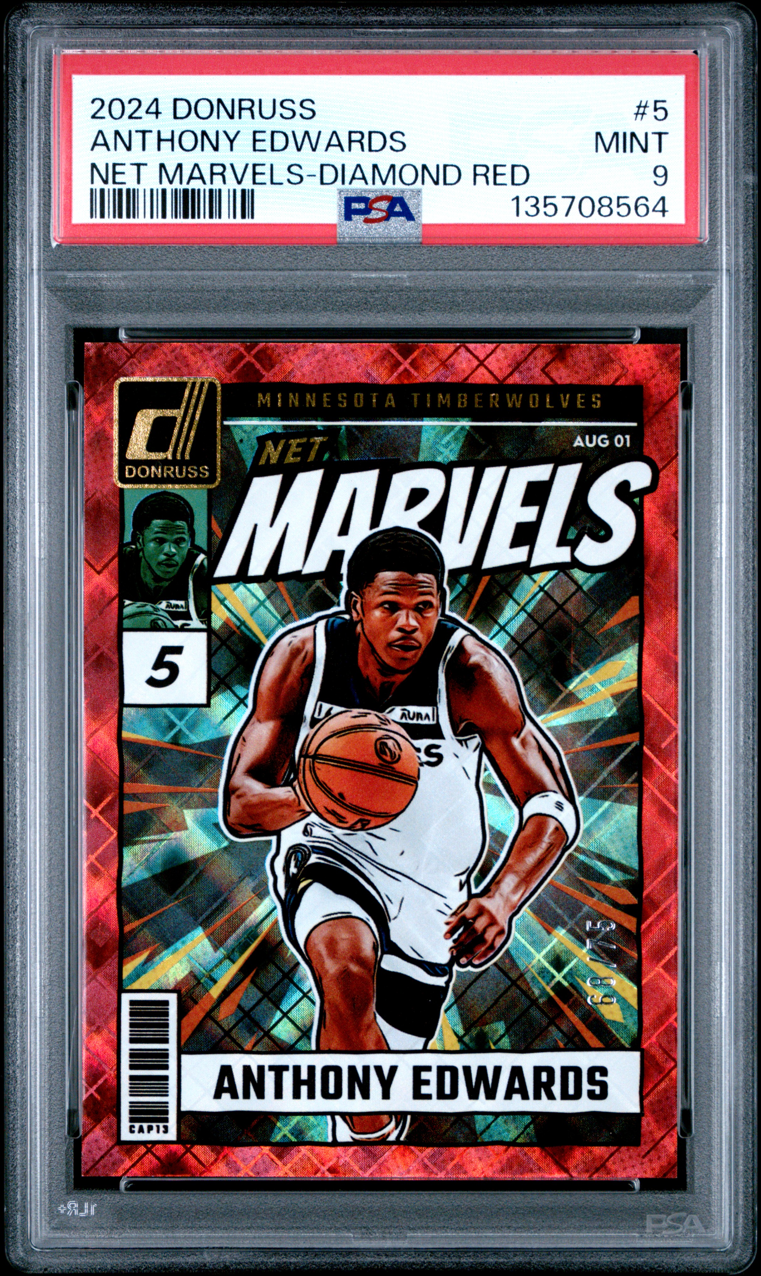 2024 Panini Donruss Anthony Edwards Net Marvels-Diamond Red /75 #5 PSA 9