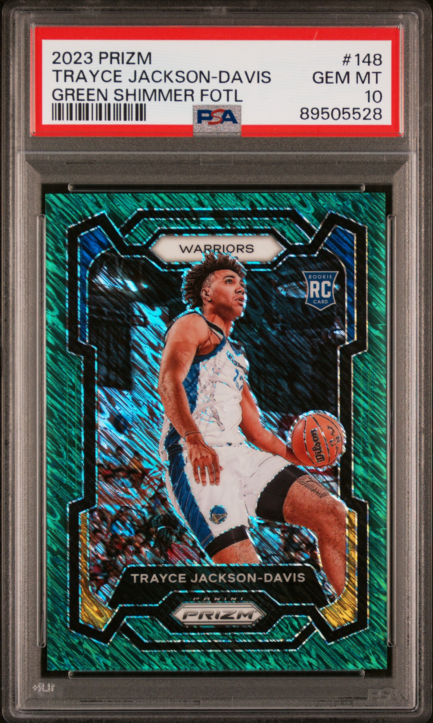 2023 Panini Prizm Trayce Jackson-Davis Green Shimmer FOTL /5 Rookie #148 PSA 10