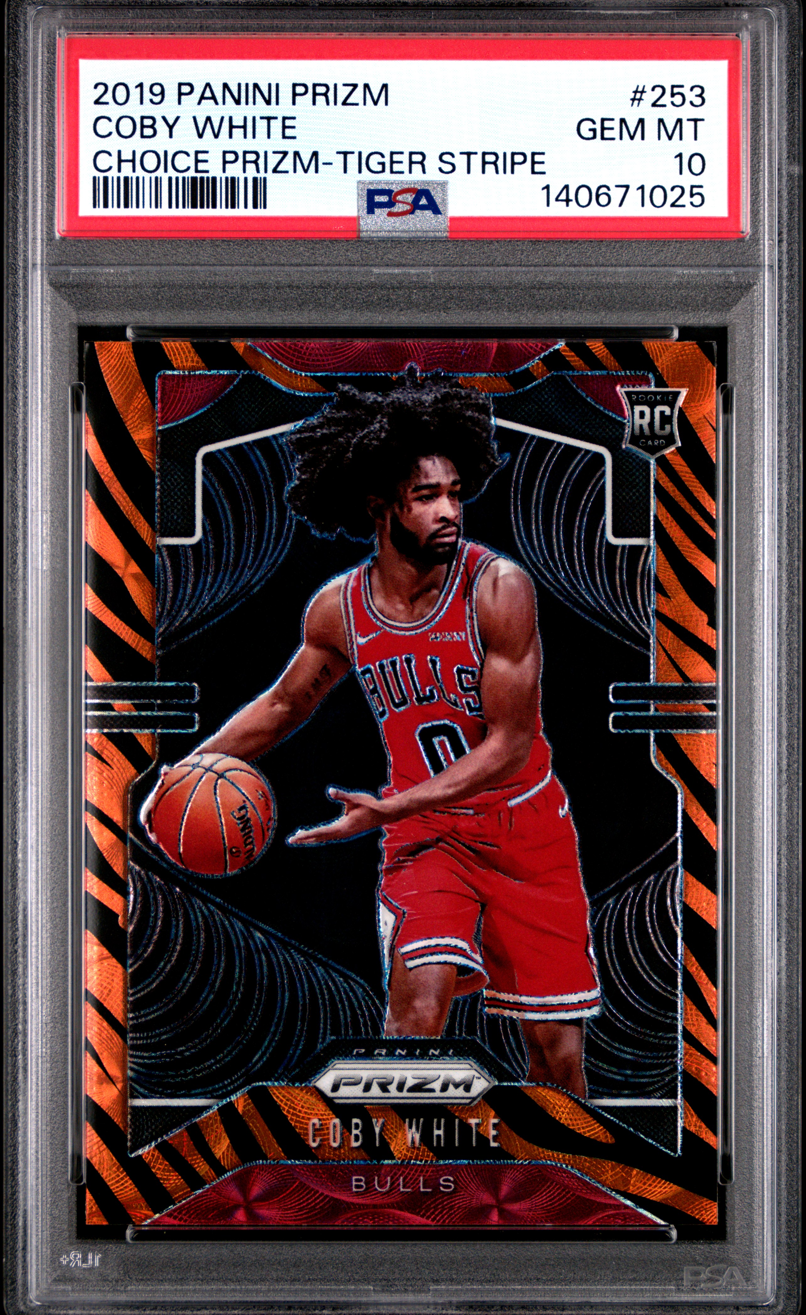 2019 Panini Prizm Coby White Tiger Stripe Choice Rookie #253 PSA 10